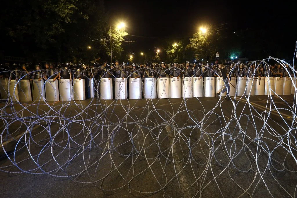 Wieder gingen in der Nacht auf Sonntag in der armenischen Hauptstadt Eriwan Tausende Oppositionelle auf die Strasse. Die Polizei sperrte ganze Strassenzüge rund um das Regierungsviertel ab.
