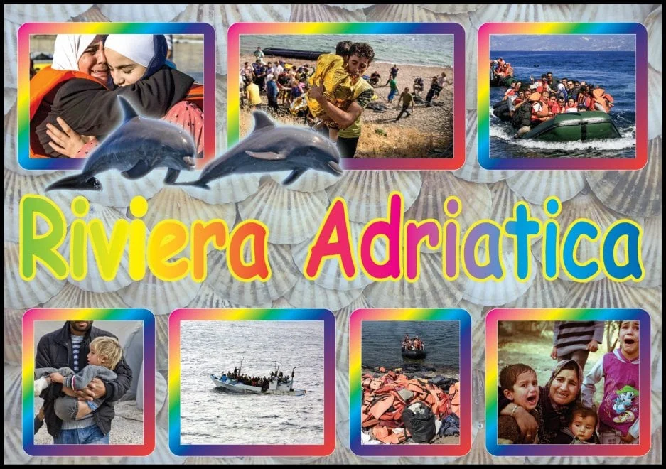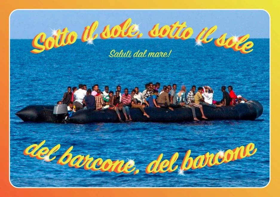 Aufgegleist wurde die Aktion von drei jungen Frauen und einem jungen Mann. Sie haben die Bevölkerung aufgerufen, Ansichtskarten aus italienischen Ferienorten einzureichen – keine gewöhnlichen Ansichtskarten. Die Bilder sollen auf giftige Art und Weise auf das Schicksal der mediterranen Boat People aufmerksam machen und an die Toten erinnern. Die üblichen Postkartenklischees werden da bissig und ironisch verdreht.