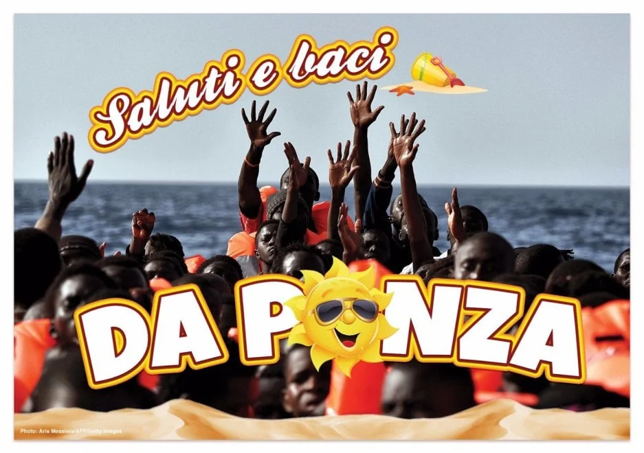 Ausgangspunkt der Aktion ist eine Erklärung Salvinis vom Juni dieses Jahres: „Die Häfen werden den ganzen Sommer geschlossen. Die NGO-Hilfsorganisationen werden Italien nur auf Postkarten sehen.“