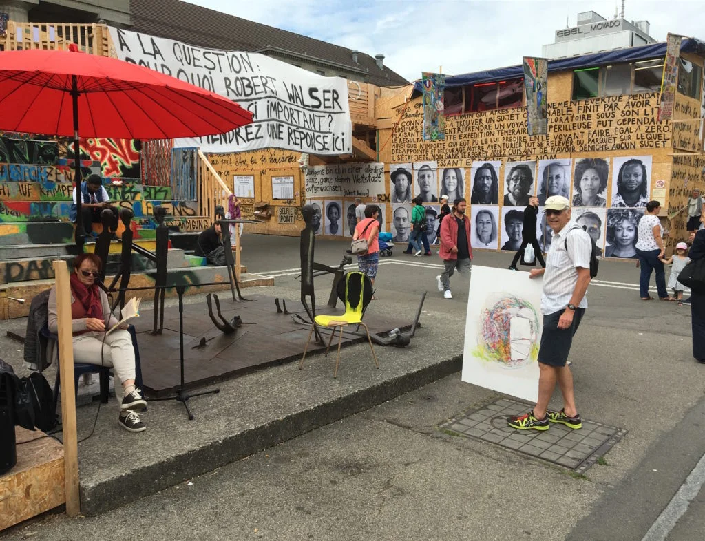 A Bienne, Hirschhorn a aménagé un bourg iconoclaste où cohabitent poètes, dessinateurs, artisans, libraires, espérantistes. Une joyeuse communauté d’utopistes de tous bords. N’en faut-il pas dans ce monde où tout brûle sous la calotte glaciaire? Le moteur spirituel de cette expérience de 80 jours est un immense auteur littéraire, Robert Walser. L’équivalent de Frisch et Dürrenmatt, une icône en Allemagne, pourtant snobé en Suisse où il mourra dans une clinique psychiatrique en 1956, le sort de tant d’anti-conformistes de ce pays.