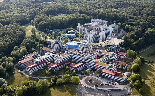 Das Läuten passt zu den Bauten der Uni, welche wie in einer mittelalterliche Stadt ineinander verschachtelt auf dem Hügel thronen. Kleine Treppen und Terrassen aus rotem Pflasterstein verbinden die Gebäude, und überall stehen die Zeugnisse von „Kunst am Bau“, kreative Werke, über welche die Universität anlässlich ihres Jubiläums ein eindrückliches Buch herausgegeben hat *. Nur die grossen Tanks vor einzelnen Gebäuden, in denen flüssiger Stickstoff oder Sauerstoff lagert, die leise surrenden Ventilatoren und die verschiedenen Hightech-Werkstätten passen nicht ganz zum Mittelalter.