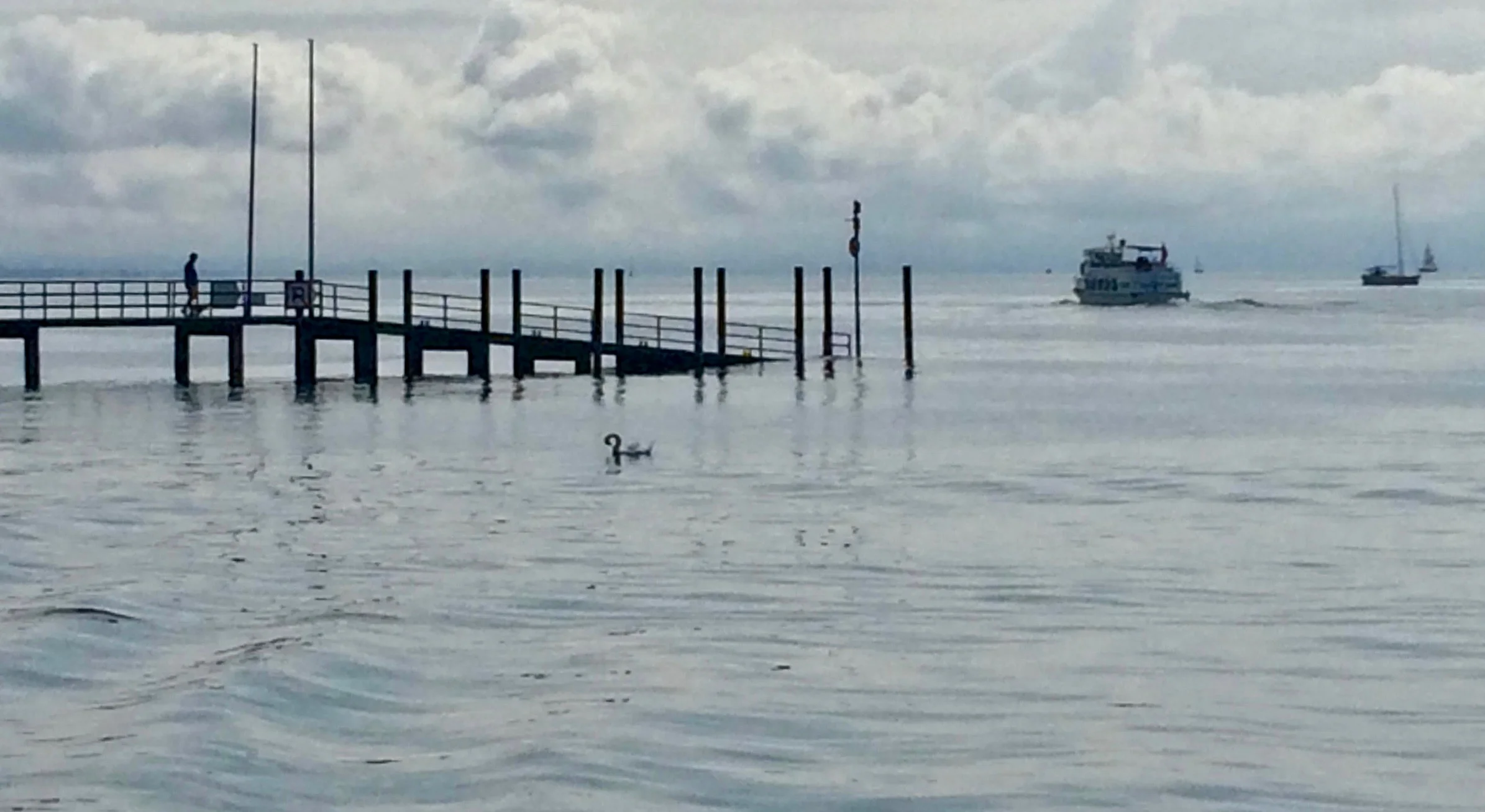 Von weitem sehe ich einen Steg, der weit hinaus in den See führt und an seinem vorderen Ende im Wasser zu versinken scheint. Gegenüber, durch einen Drahtzaun abgegrenzt, liegt die Bodensee-Therme. In einem Wasserbecken drängen sich unzählige Menschen; ihre Köpfe scheinen dicht gepackt über dem Bassinrand zu schweben. Ich wundere mich, dass man es dort schöner findet als im offenen See.