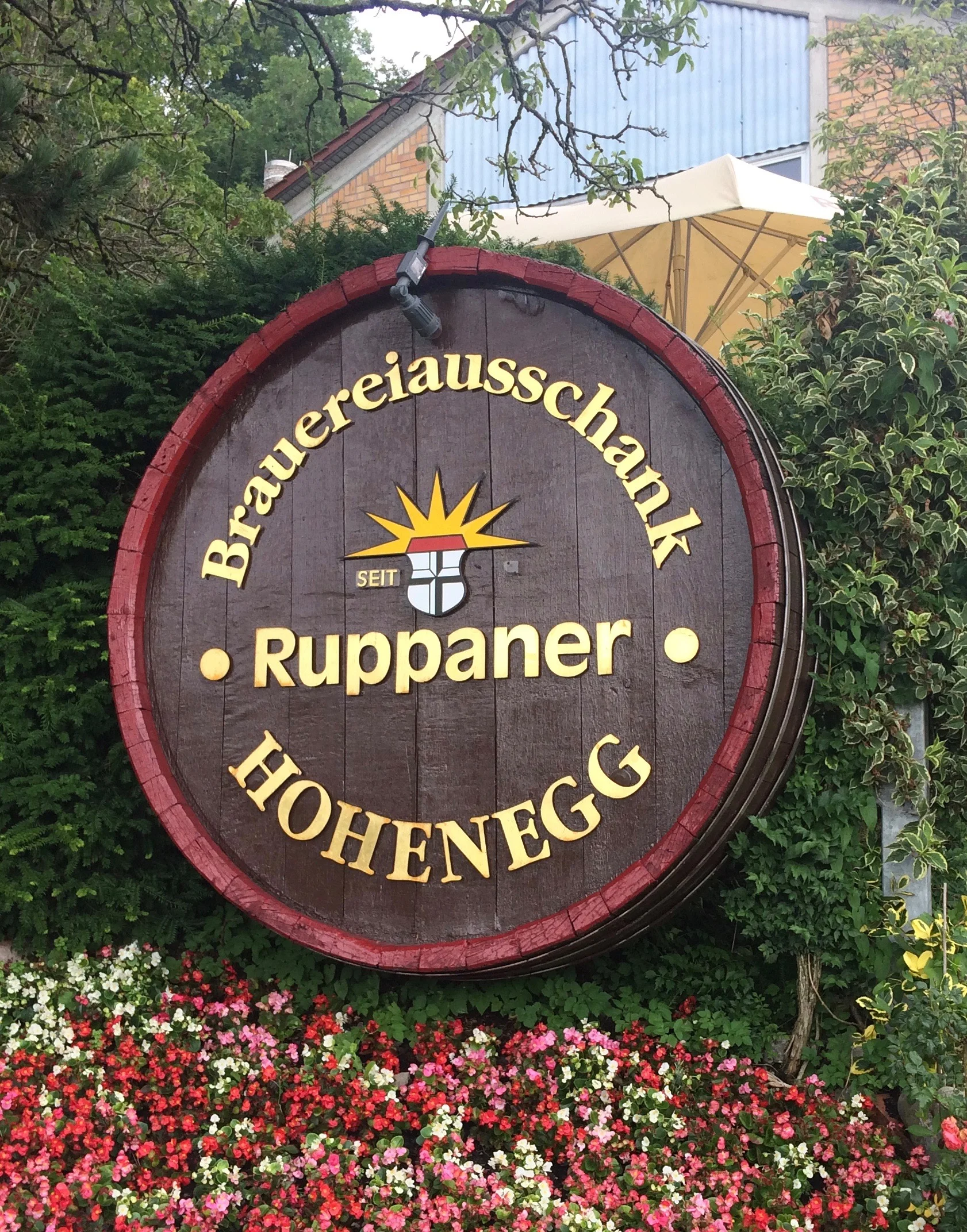 Ich schlängle mich zwischen Autokolonnen hindurch und finde die Quartierstrasse, welche mich zurück ans Seeufer leitet, wo ich auf eine Überraschung stosse: die Ruppaner Brauerei, gegründet 1795. Sie nutzt den schmalen Landstreifen zwischen dem Ufer und einer natürlichen Sandsteinwand. Früher hat man hier offenbar Tunnels in die Felswand gegraben, um das Bier kühl zu halten. Wie ich lese, stehen dort noch immer Gärtanks, wo das ungefilterte Bier lagert, das „Schimmele“.