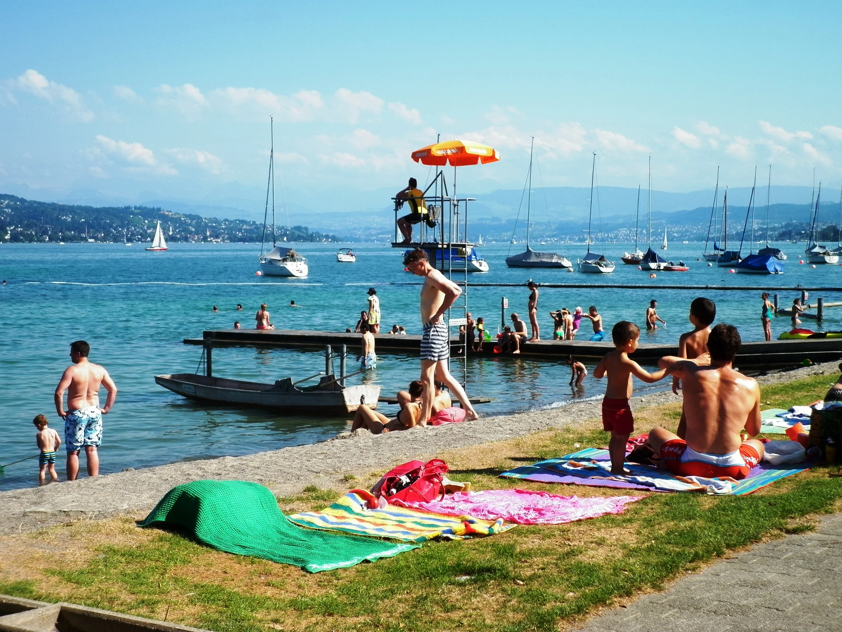Danach gibt es ein Bier oder einen Capuccino und ein Stück Himbeerwähe unter dem gelben Sonnendach direkt am Seeufer. So ist das im Sommer in einem Seebad mit dem vielsagenden Namen Mythenquai.