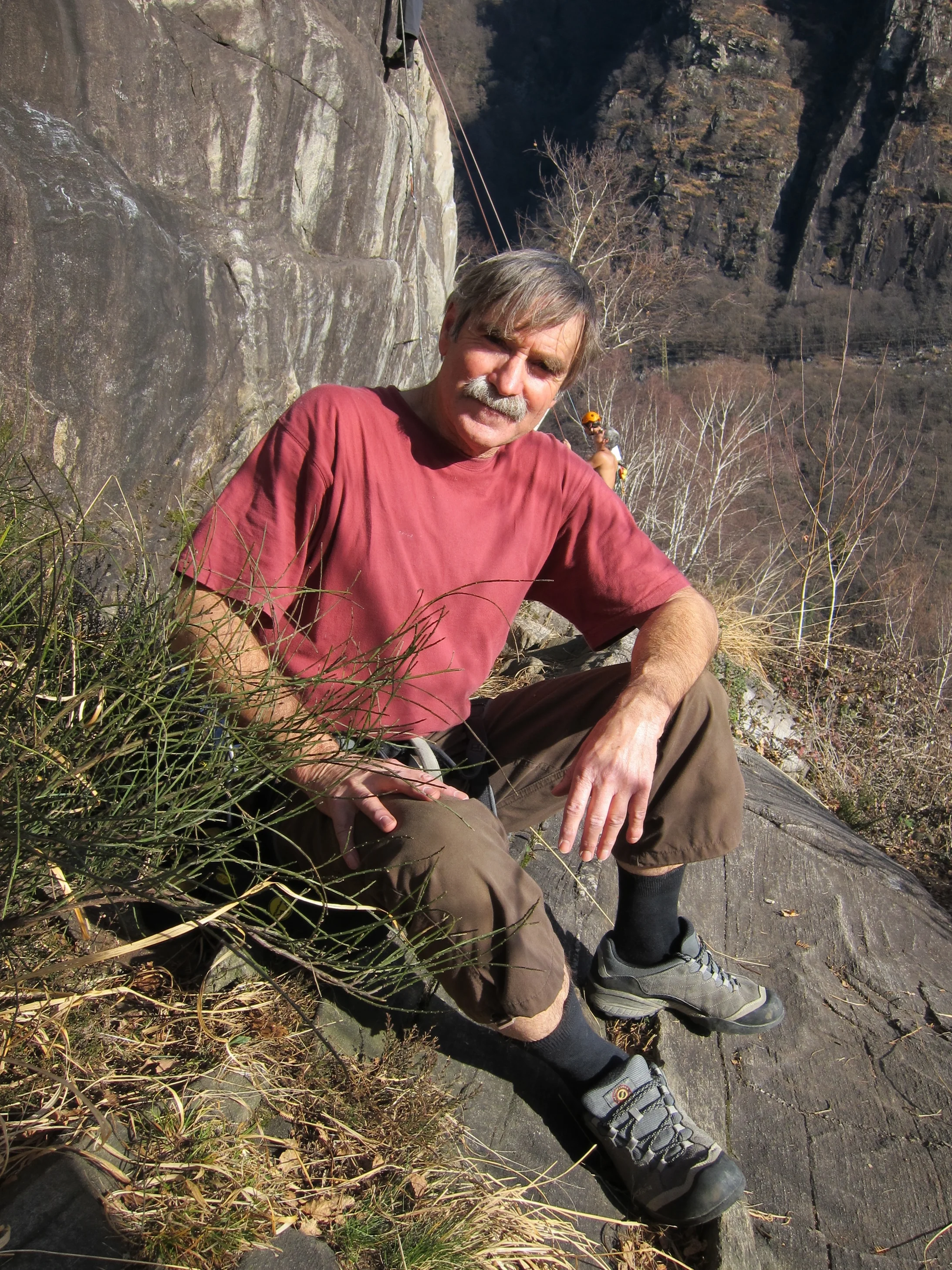 Im Buch schildert er, wie er an seinem siebzigsten Geburtstag an einem wolkenlosen Tag im Gneis von Ponte Brolla klettert: „Ich wurde so übermütig, dass ich buchstäblich ins neue Lebensjahrzehnt stürzte – das heisst ins Seil. Die schöne Route gehört zu den steileren der Wand, und ich blieb unversehrt. Sie heisst übrigens Mammut longlife. Wenn das kein Omen ist!“
