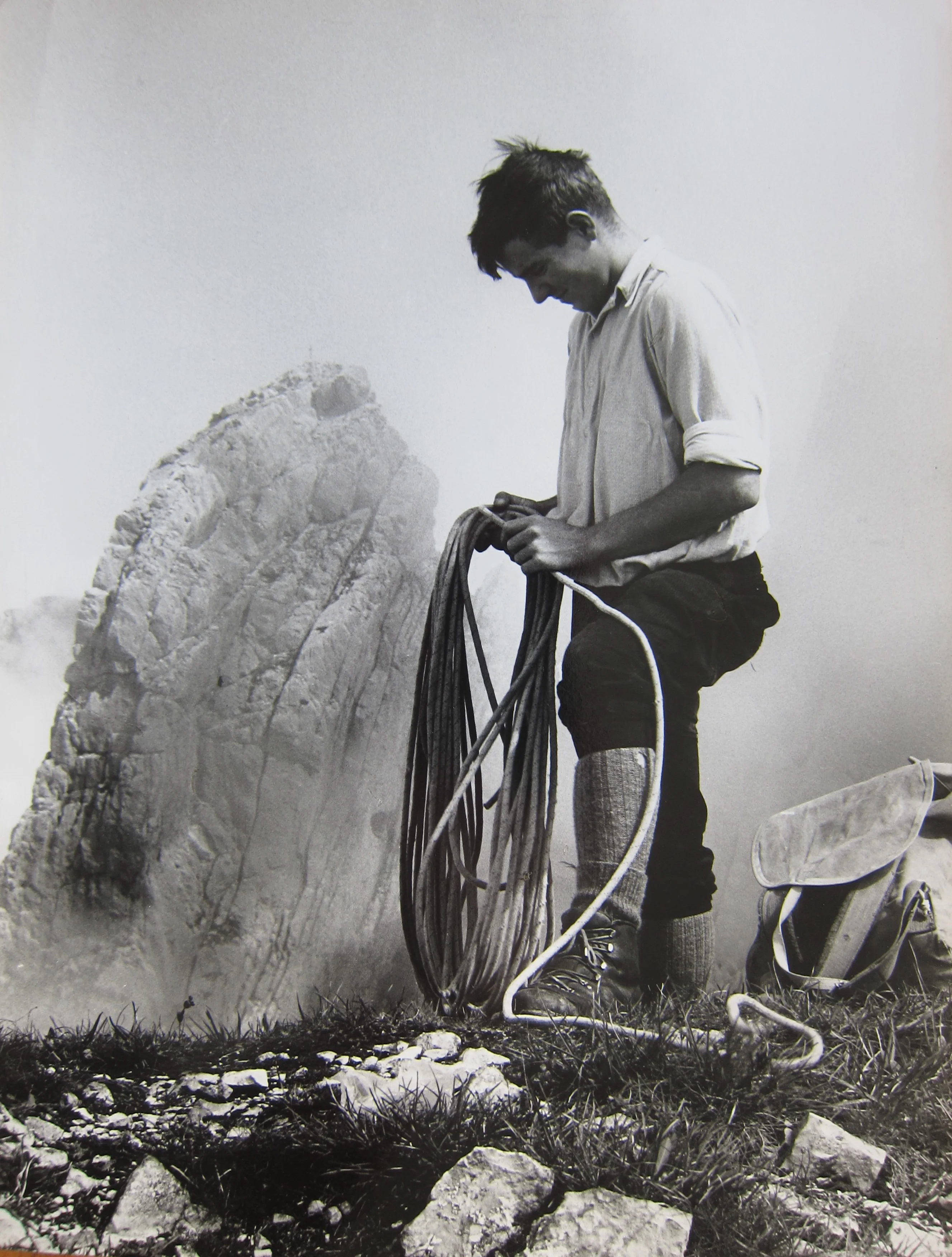 Das orange Seil hatte ihm ein Freund geschenkt. Es war durch einen bösen Sturz auf einigen Metern beschädigt: „Heute würde sich kein Mensch mehr mit einem so übel zugerichteten Seil auf eine Klettertour wagen, aber ich war Lehrling und lebte von nichts und der Liebe. Mein Budget für ein Wochenende betrug ein bis zwei Franken, während der Woche bestand meine Mittagsmahlzeit aus einem Cervelat mit Brot und einer Zimtschnecke. Ein eigenes Seil? Ein Traum.“ (1)