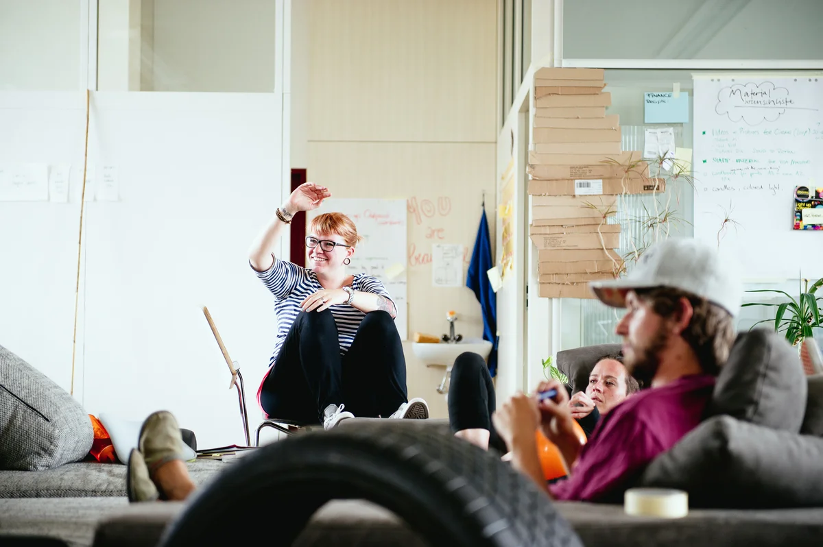 Die 24jährige Dänin Mona führt mich herum. Sie ist Teil des zwölfköpfigen Teams SUI 3 der Kaospiloten, also des dritten in der Schweiz in Ausbildung begriffenen Studienjahrgangs. Das kommende Team SUI 4, das im Herbst dieses Jahres einsteigt, sei startklar, erklärt Mona. Das Besondere: Die jetzigen Studierenden wirkten bei dessen Auswahl in einem zweitägigen Assessment entscheidend mit.