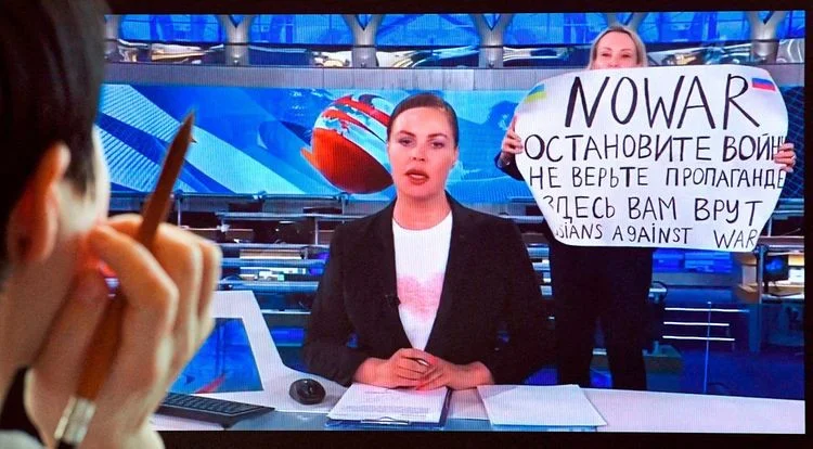 Marina Owsjannikowa sitzt in einem Gerichtssaal in Moskau. Sie, eine Journalistin des russischen Staatsfernsehens, war es, die zu Beginn des Krieges während der Hauptnachrichten ins Studio eingedrungen war und ein Anti-Kriegs-Plakat vor die Kamera hielt. Wegen «Verbreitung falscher Informationen» muss sie mit bis zu zehn Jahren Gefängnis rechnen.