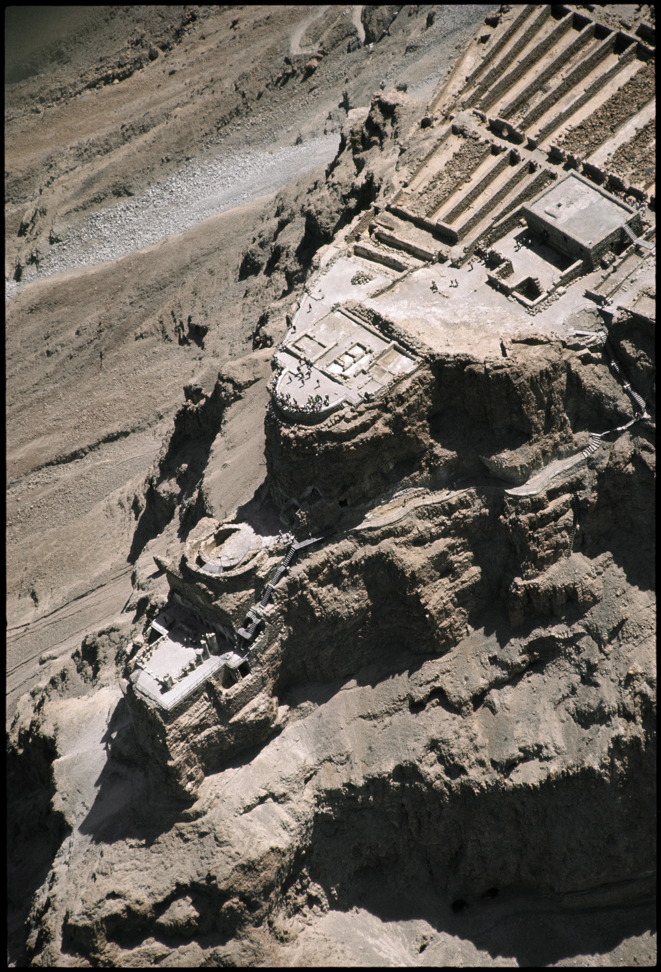Sonderbar: Der Felsklotz unweit des Toten Meers, ein natürlicher Burgberg, wenn es je einen gab, geriet erst spät, sehr spät in den Lichtkegel gesicherter Geschichte. Ein hasmonäischer Priesterfürst nützte erstmals nach 104 v. Chr. den Fels als Festung. Seinen grossen Auftritt hatte Masada aber erst unter König Herodes (73-4 v. Chr.). Dieser errichtete auf der Gipfelfläche des Felsens Kasernen, Wohn-und Verwaltungbauten, Bäder und Lagerräume; absteigend über drei Stufen, die eine überdachte Treppe untereinander verband, entstand an der Nordspitze ein „hängender“ Palast, Winterresidenz des Königs. Vor allem aber befestigte er Masada mit Kasemattenmauern sowie 38 Wachttürmen und legte in deren Schutz Waffenarsenale, Vorräte an Getreide, Datteln, Hülsenfrüchten, Wein, Öl und Wasser an.