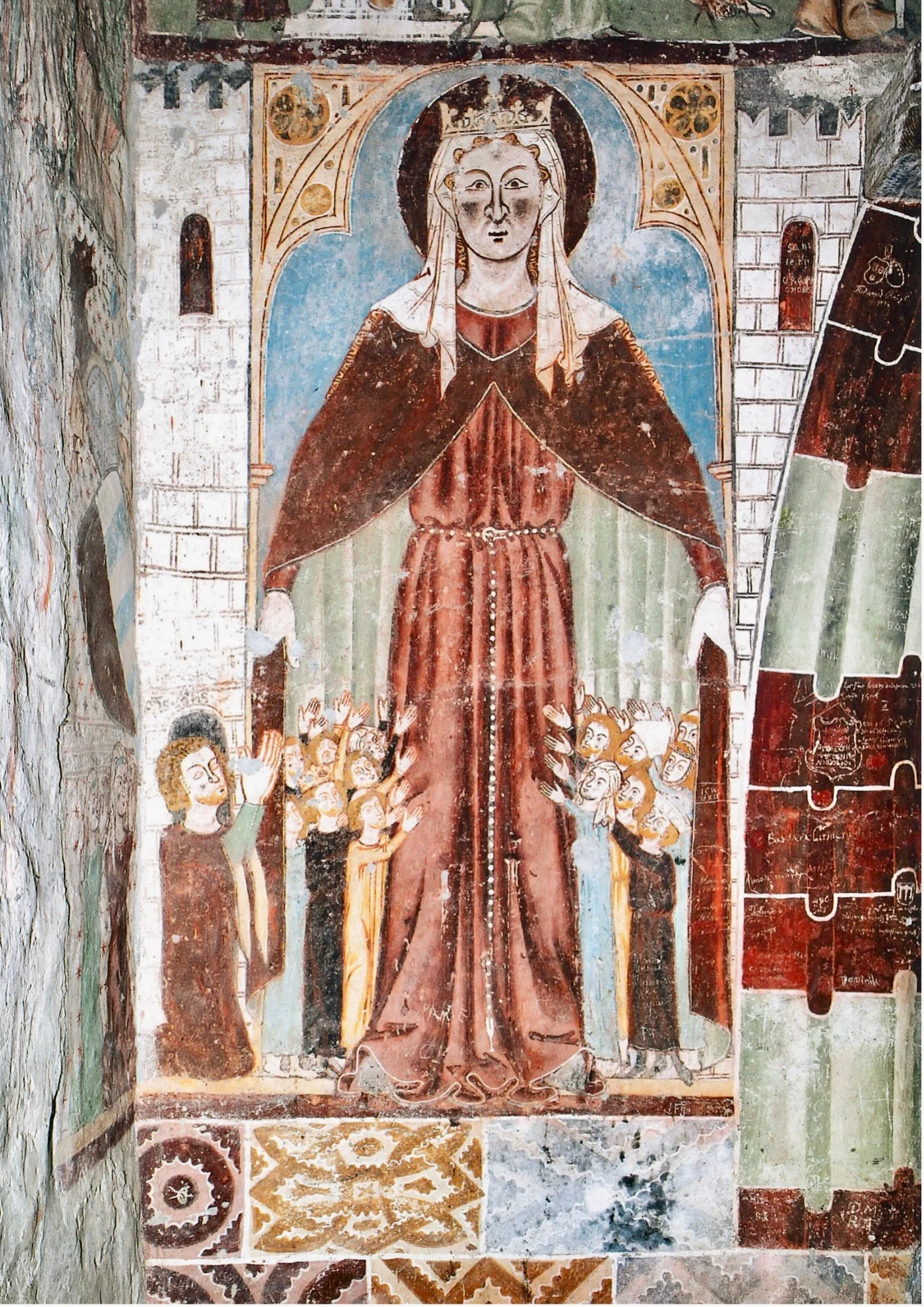 Zwei Bilder des Waltensburger Meisters haben mich besonders berührt. Da ist einerseits das optisch auffällige, riesige Wandgemälde mit dem Drachenkampf des heiligen Georg und anderseits die grossfigurige Schutzmantelmadonna an der Chorbogenwand: Unter ihrem weit ausgreifenden Mantel suchen Gläubige «Schirm und Schild». Jede Zeit hat ihre Nöte und Wirren – und die Sehnsucht nach Sicherheit.