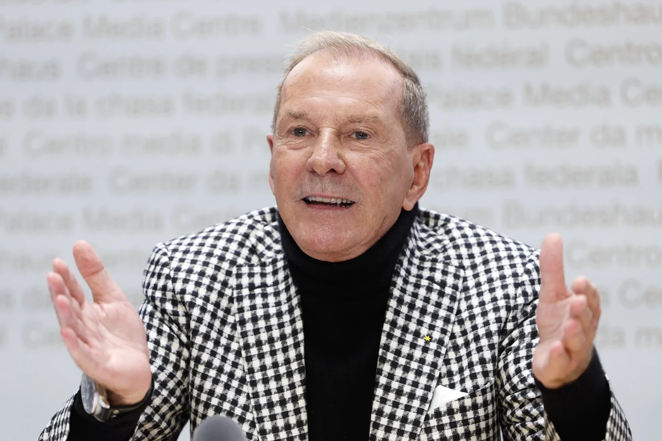 Kurt Aeschbacher bei der Präsentation der Kompass-Initiative in Bern (Bild vom 30. September 2024, Keystone, Peter Klaunzer)