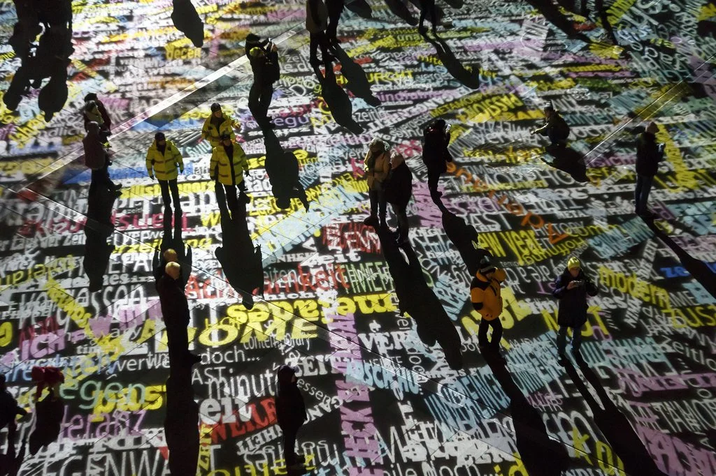 Der renommierte deutsche Lichtkünstler Philipp Geist projizierte auf den Platz vor dem Dom Tausende Schlagwörter. Sie waren von den Kölnern eingereicht worden und drückten das Bedürfnis nach Frieden und Sicherheit aus.