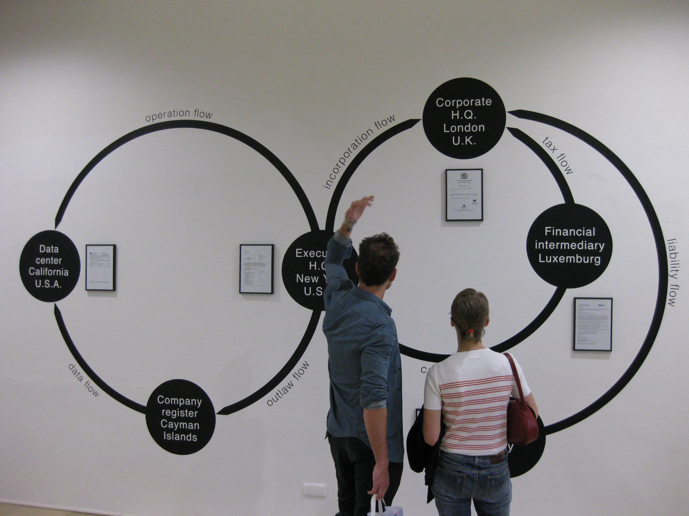 Juristisch interessant ist auch das Projekt „Loophole for all“, für das der Italiener Paolo Cirio eine Goldene Nica für „Interactive Art“ bekam. Damit nicht nur Großkonzerne Steuern hinterziehen können, hatte sich Cirio in das Firmenregister der Cayman Islands gehackt und dann die Namen der dortigen Briefkasten-Firmen über ein eigens dafür gegründetes Unternehmen mit Sitz in London und Datenverarbeitung in den USA billig verkauft. Die Zahlungsabwicklung lief via Luxemburg – jedenfalls so lange, bis PayPal das Ganze zu heiß wurde und ausstieg.