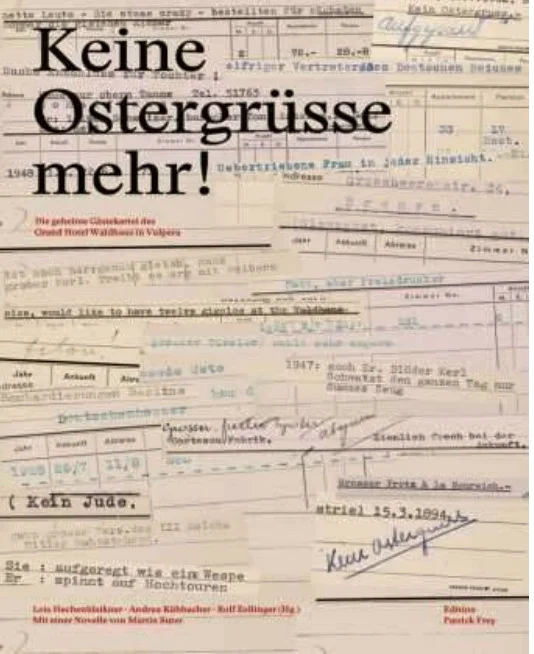 Anfänglich wollte ich nur ein grandioses Buch vorstellen: nämlich „Keine Ostergrüsse mehr! Die geheime Gästekartei des Grandhotel Waldhaus in Vulpera“. Schon Ende März erschien in der Edition Patrick Frey (Zürich 2021, 396 Seiten Folio) der Geniestreich des Fotokünstlers Lois Hechenblaikner, in Zusammenarbeit mit dem Herausgeber Rolf Zollinger, ehemals Besitzer des Waldhaus, der Kuratorin Andrea Kühbacher und mit Beiträgen von Martin Suter, Bettina Spoerri und Hans Heiss. Zwei Wochen später war das Buch vollständig vergriffen und auch beim Verlag kein Presseexemplar mehr zu haben, so dass ich auf eine zweite Auflage zu warten hatte. Bis ich freundlicherweise mit dem Eineinhalbkilohappen aus dem Grandhotel bedient werden konnte, war allerdings bereits die vorbildliche Rezension erschienen: von Peer Teuwsen in der „NZZ am Sonntag“. Die Lektüre hatte mir die Lust und den Schneid genommen, dagegen in Konkurrenz zu treten. Statt dessen besorgte ich die Genehmigung des Autors, hier einen Link zu seiner Besprechung einzubauen:
