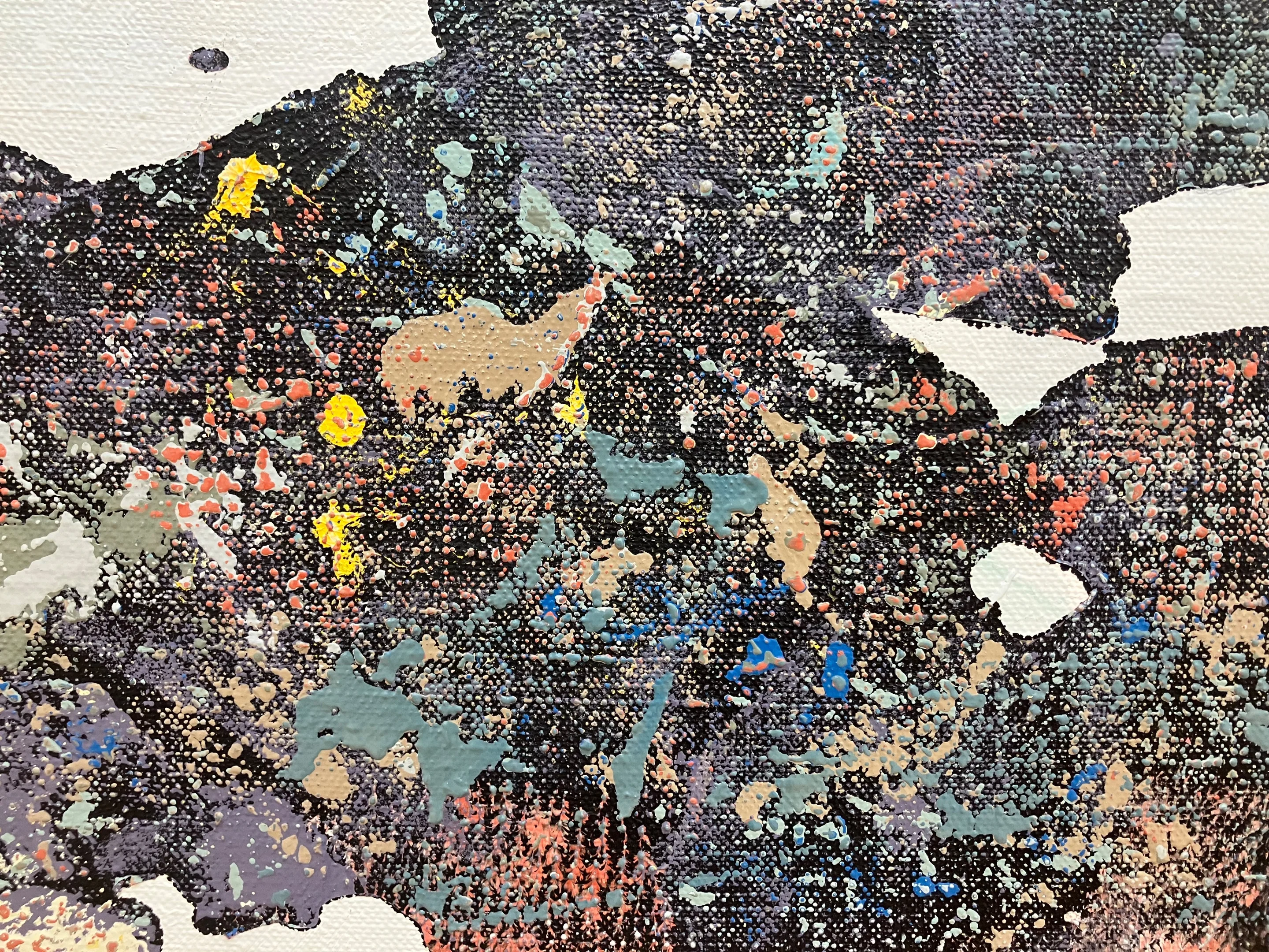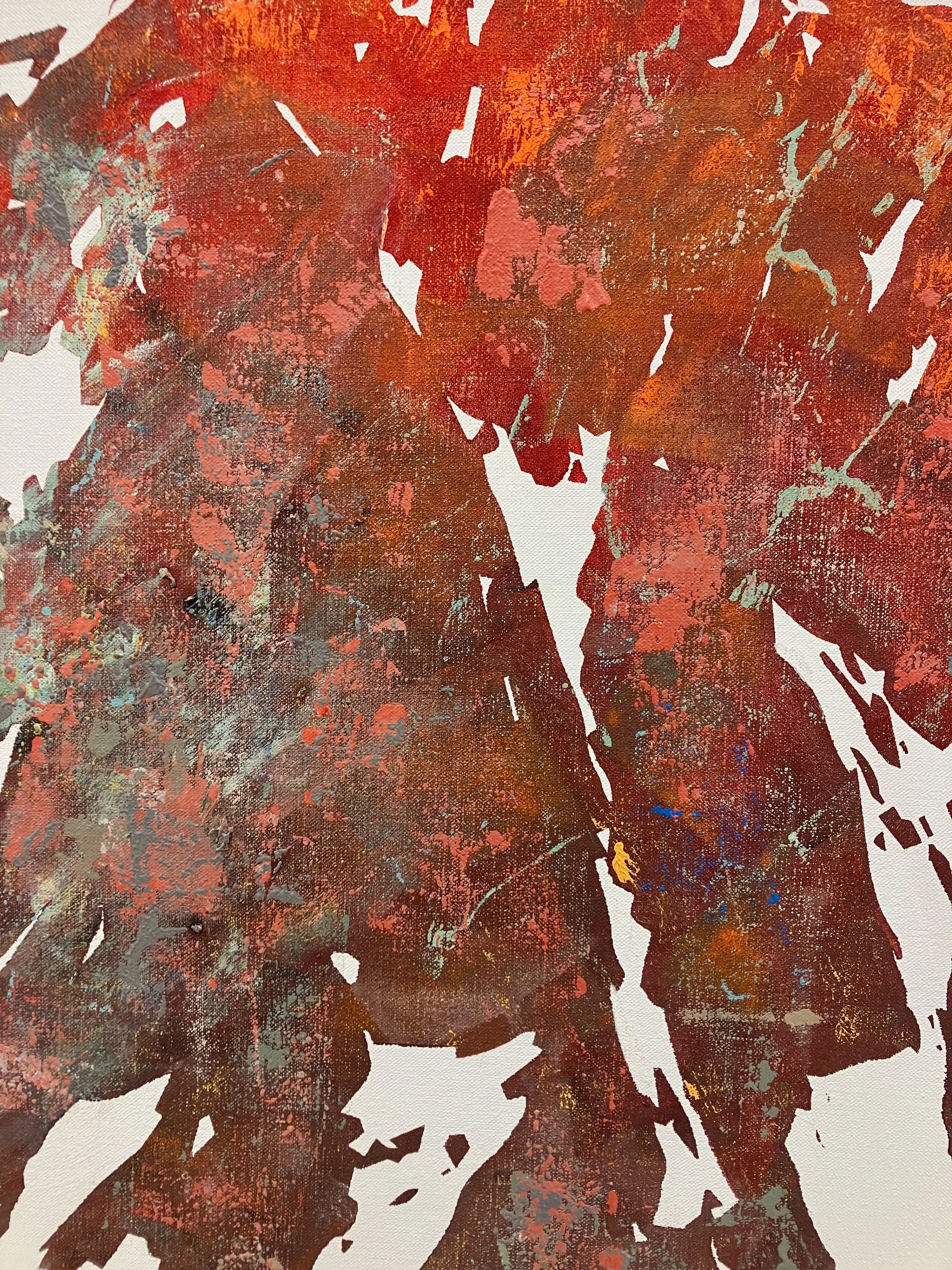 Wer nahe an die bemalte Oberfläche der Grossformate herantritt und weniger das Ganze als vielmehr das Detail in den Blick nimmt, kann in den Bildern des Steins oder des Schnees Spuren von Farbe entdecken – und er wird, da die Farbmaterie sich wellt, sich an den Rändern aufwirft und Volumen annimmt, auch Zeuge davon, dass Malerei Skulptur und Skulptur Malerei sein kann. In einigen Fällen bleibt es nicht bei den Spuren von Farbe. Statt der Grau-Abstufungen zeigt Lichtseiner Variationen von Braunrot, in das er hier einen kleinen gelben und dort einige blaue Flecken setzt.