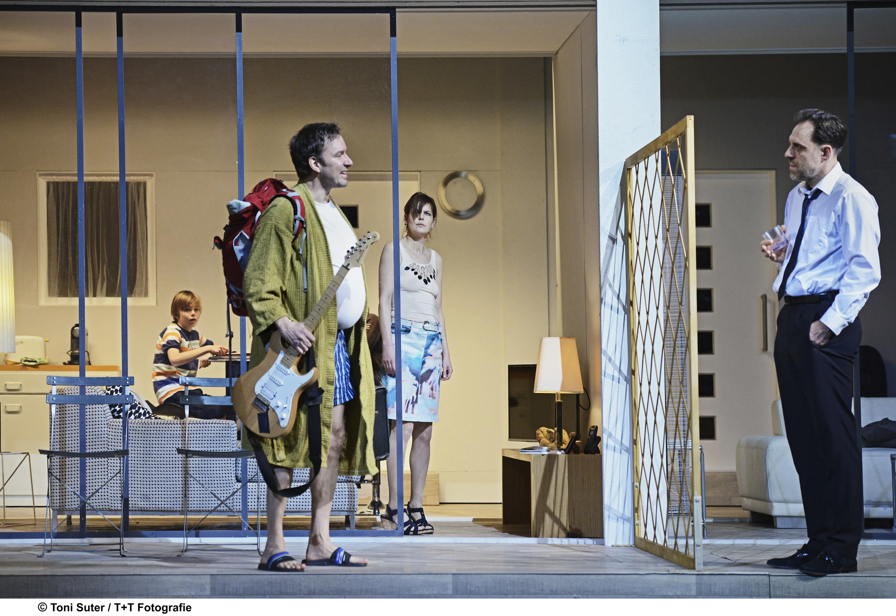 Dani Levy lebt und arbeitet schon seit vielen Jahren in Berlin. Mussten Michael Neuenschwander oder das Ensemble ab und zu bei den Probenarbeiten eingreifen, weil Levy sich in den Schweizer Verhältnissen nicht mehr so auskennt? „Überhaupt nicht!“ winkt Neuenschwander ab. „Dani Levy sieht das alles sehr klar. Vielleicht ist sein Blick auf die Schweiz durch die Distanz noch deutlicher, noch unverbauter. Ich glaube, er hat sowieso ganz allgemein einen klaren Blick auf Gesellschaftsverhältnisse und Beziehungen. Aus der Distanz scheut man sich auch nicht, unmissverständlich zu artikulieren, was man sieht. Und wenn man hier ist, sieht man vieles, bei dem man sich sagt, ja ok, muss ich das jetzt wirklich schon wieder ansprechen? Es wird einem zu mühsam oder zu langweilig. Man schwimmt dann mit dem Strom, ohne es eigentlich zu wollen, nur weil es einfacher ist. Und mitschwimmen ist ja tatsächlich einfacher, als über irgendetwas herzuziehen, das man ohnehin nicht ändern kann. Das ist eben auch ein Thema des Stücks.“