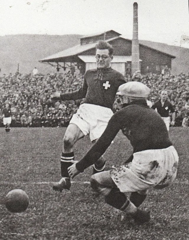 Leopold „Poldi“ Kielholz erzielt in der 7. Minute das erste Tor eines Schweizer Spielers an einer Fussball-WM. Kurz vor der Pause gelingt ihm ein zweiter Treffer.