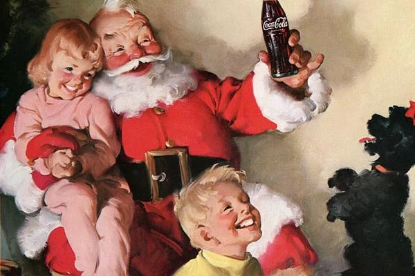 Nel 1930 la Coca Cola, ecco il capitalismo che entra in scena, vuole allargare il suo mercato rivolgendosi ai giovani e giovanissimi, chiede a Haddob Sublom di usare Santa Claus per la pubblicità. È in questo modo che il rosso e il bianco della Coca Cola diventano i colori canonici di Babbo Natale. Lagioia nel suo libro tratta ampiamente dell’operazione del brand americano che, arruolando santa Claus come testimonial, non solo aggirò la legge che proibiva di produrre materiale pubblicitario in cui venissero mostrati bambini under 12, mentre bevevano la bibita, ma creò il vero e proprio “spirito guida” che identifica con un messaggio sulle cose ultime di cui il portadoni stava diventando l’incarnazione. Questo messaggio si traduce nella frase: “Non morirete più”.