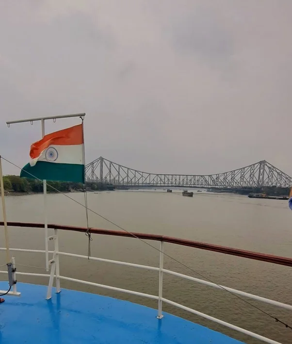 Dem Schiffsreisenden bietet Kolkata einen überaus freundlichen Empfang. Die stillgelegten Fabrikschlote auf beiden Seiten des Hooghly geben unserem Blick auf die vorbeiziehende Uferlandschaft zwar weiterhin den Takt vor. Aber in den vielen Baumgruppen dazwischen verstecken sich alte Landsitze der britischen Kolonialherren.