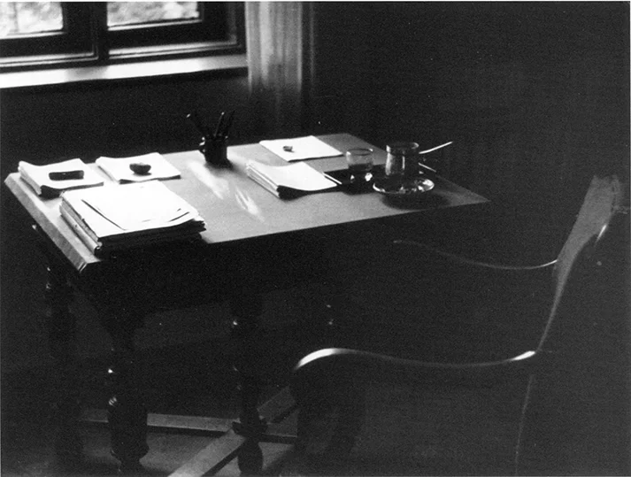 Und da gibt es das Fotolabor. Im letzten Raum, unten gelegen, ist die Rolleiflex von Péter Nádas, sind Manuskripte, Bücher und Utensilien ausgestellt. Der Besucher kann sich setzen und in den Ausgaben der Werke von Nádas lesen. Und eben das Labor. Da ist das Vergrösserungsgerät, da sind die Packungen mit den Fotopapieren und die Flaschen mit den Chemikalien, da ist die spezifische Beleuchtung der Dunkelkammer. In dieser „Dunkelkammer“ hat Péter Nádas an seinen Bildern so gearbeitet wie an seinen Manuskripten. Es ist still und gut.