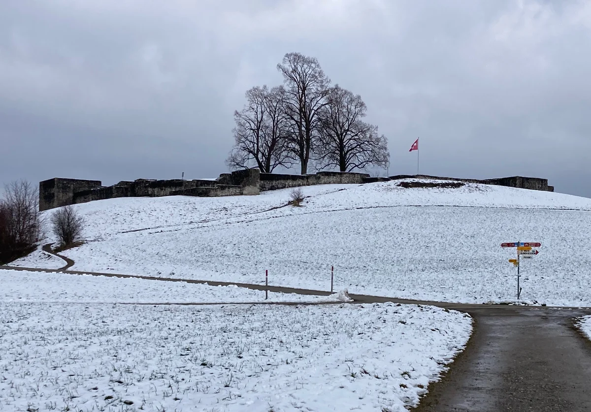 Ich wende mich südwärts, dem Talhof und Seegräben zu. Der Weg ist manchenorts vereist. An andern Stellen zwingen mich ausgedehnte Wasserlachen zum Ausweichen ins weiche Moor. Es gurgelt und quietscht, und meine Wanderschuhe glänzen danach in feuchtem Schwarz. Am Wegrand arbeitet ein Rabe eifrig an einem nicht identifizierbaren Leckerbissen und hüpft schliesslich, als ich schon ganz nahe bin, mit einem indignierten Blick ein paar Meter zur Seite.