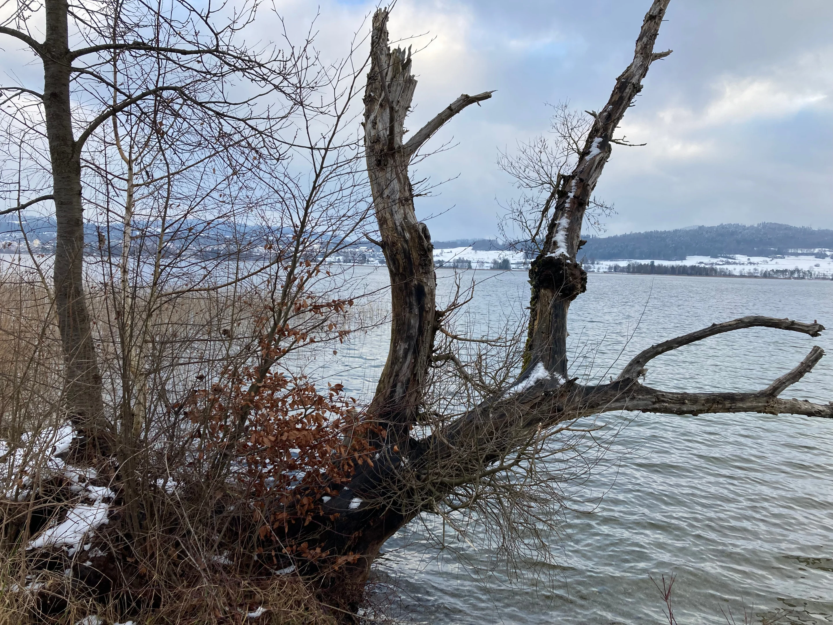 Nach zwei Stunden bin ich zurück beim Auto. Joggerinnen und Jogger haben unterdessen den Uferweg erobert. Der Hochnebel bemüht sich um seine eigene Liquidation. – Ob sich die Menschen vor 10’000 Jahren wohl auch schon über Nebel und Föhn beklagt haben?