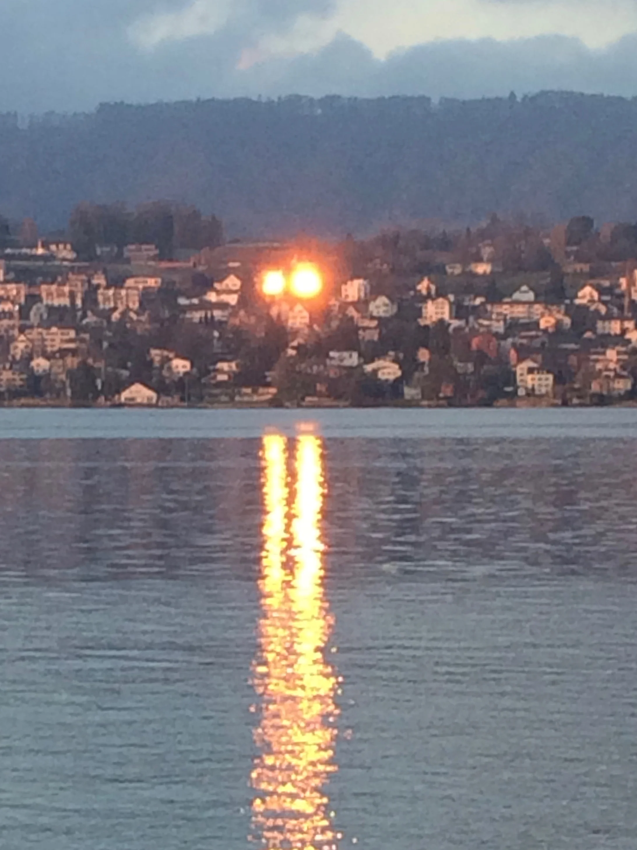 Dabei haben es mir weder Ärzte nahegelegt, in der Morgendämmerung in der Badehose zum nahen See hinunterzugehen, noch Pfarrer oder Psychologen empfohlen, über das Leben nachzudenken. Und doch schwamm ich vom Mai bis Ende September, bevor die ersten Herbststürme übers Land fegten, fast täglich im See, schaute, auf dem Rücken paddelnd, wie die Sonnenstrahlen die Wölklein über dem Albis in rötliches Licht tauchten und am gegenüberliegenden Ufer von den Fensterscheiben als gelb-orange Schweinwerfer zurückgeworfen wurden, wie später das Licht über dem See näher kam, zuerst die Mastspitzen der an den Bojen verankerten Segelboote einfing, dann den Masten entlang zum Wasser hinunter glitt und schliesslich auch den einsamen Schwimmer draussen im See fand.