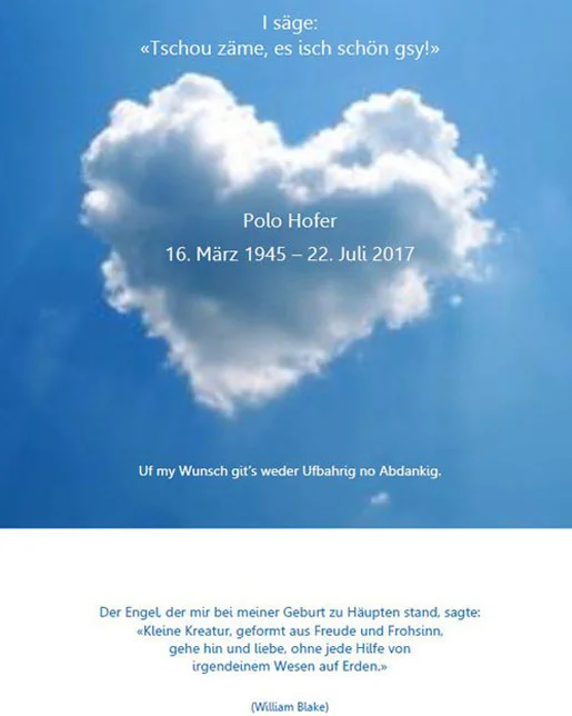 Hofer hatte Lungenkrebs. Die Todesanzeige hat er selbst verfasst.