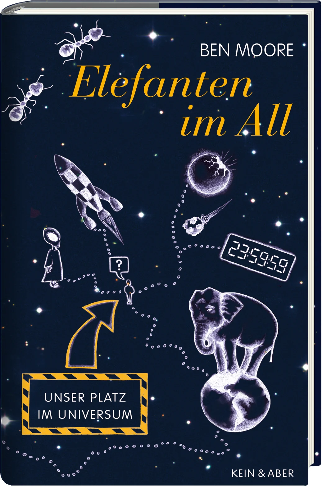 Damit, so Ben Moore, habe er sich in seinem ersten Buch befasst. „Elefanten im All“. Der launige Titel geht auf einen Vortrag Ben Moores zurück, in dem er über allfälliges Leben im All referierte. Und wenn es Leben im All gäbe, könnten auch Elefanten im All umhersausen.