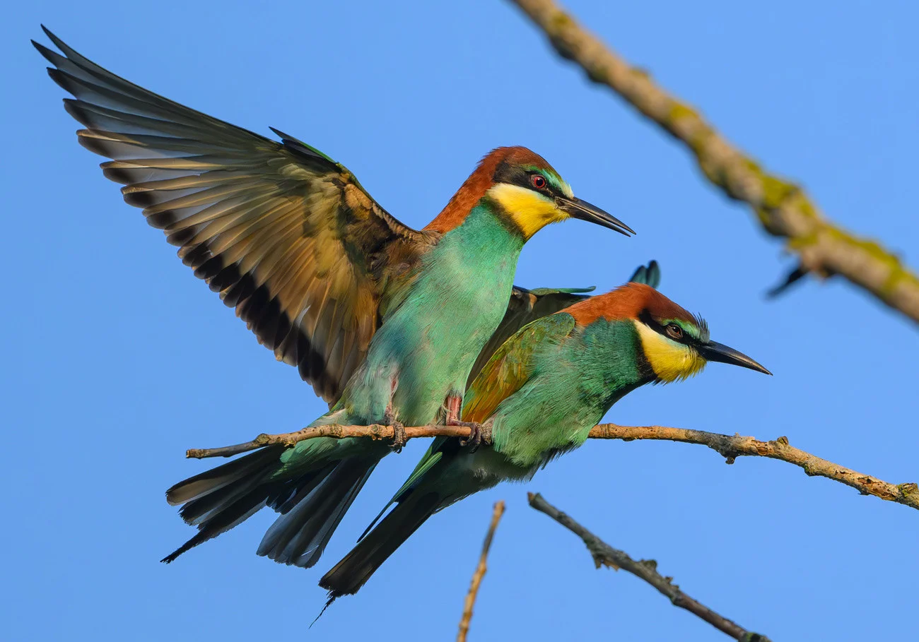 Bienenfresser (Merops apiaster) sind oft in Kolonien anzutreffen. Sie sind gute Flieger, wirken aber am Boden unbeholfen. Sie ernähren sich von Bienen, Wespen, Hornissen, Libellen und Zikaden, die sie im Flug erbeuten.