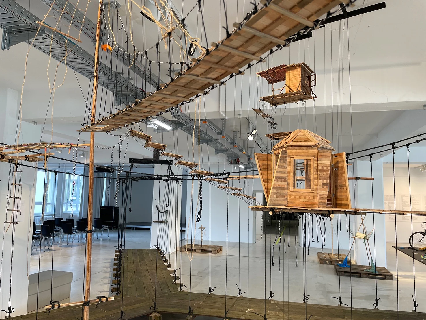 Im Vorfeld der Ausstellung sind etliche Architekturfakultäten eingeladen worden, sich thematisch mit dieser Art des Bauens zu beschäftigen. Daraus resultierten historische Untersuchungen insbesondere zum Barrikadenbau, der seit dem Mittelalter bekannt ist, bis hin zu kunsthistorischen Einordnungen, so etwa, wenn die labilen Brettergebilde am Boden und in den Bäumen mit der vitruvianischen Urhütte in Beziehung gebracht werden.