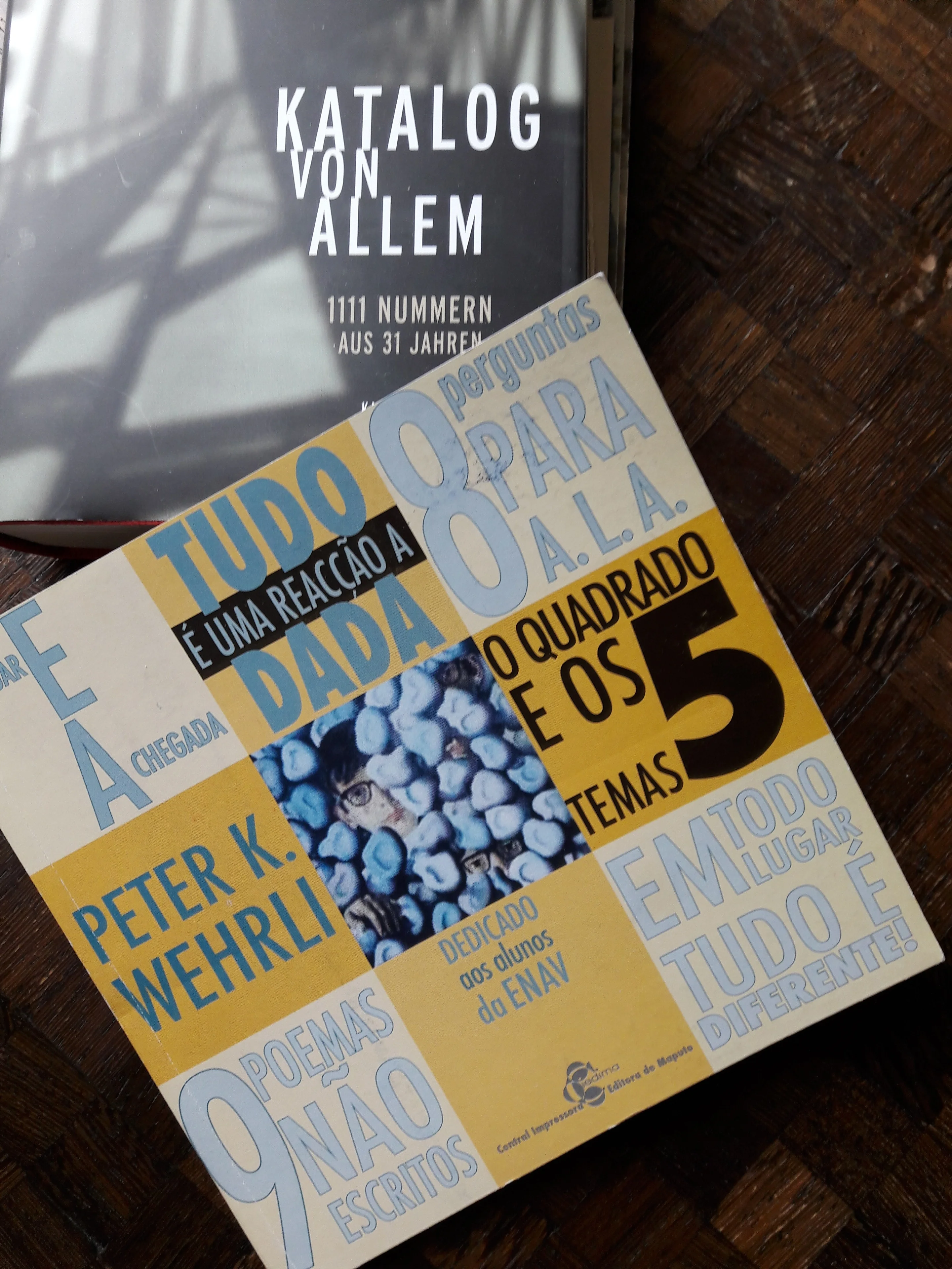 Es ist Nachmittag, alles leer, nur wir zwei am kargen Holztisch. Die plimplam-Allerweltsmusik haben wir abstellen lassen, ausser uns würde sie sowieso niemand hören, denn wir sind allein. Dritter im Bunde ist gewissermassen der «Catálogo de Tudo». Oder besser gesagt: der kleine Bruder des «Catálogo». Und noch besser, beziehungsweise genauer gesagt, ist es ein Supplément, ein kleiner zusätzlicher Band. Auch wenn man der Sprache, in der das Büchlein vorliegt, nicht mächtig ist, versteht man schnell, um was es geht: Dada. Also logisch, dass wir im Dada-Haus sitzen … Nun muss man wissen, dass dieses Werk zwar auf Portugiesisch vorliegt, aber ein Afrikaner ist und aus Moçambique stammt. Vorne steht drauf: «O quadrado e os cinco temas». Und dies wiederum heisst: «Das Quadrat und seine fünf Themen», was sich auf das Format des Büchleins bezieht, das schön quadratisch vor uns liegt. Auf Portugiesisch.