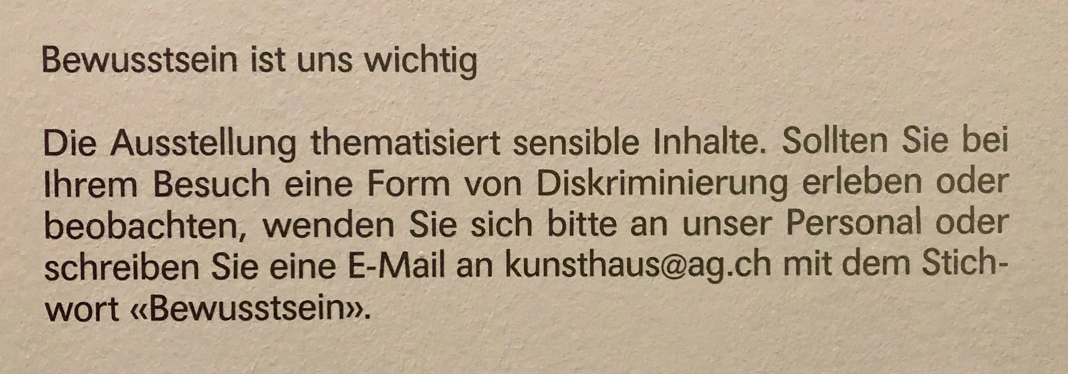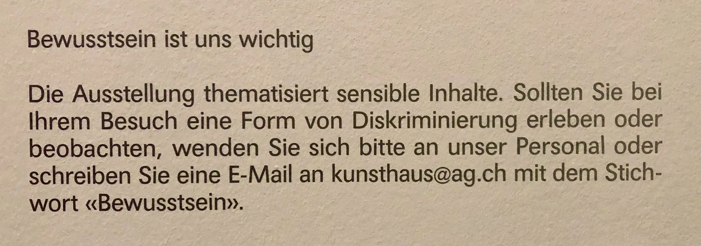 Das Bemühen um die richtigen Konsequenzen ist an Wand- und Saaltexten ablesbar. Ein einschlägig besetztes «Advisory Board» hat die Ausstellungsmacherinnen begleitet. Im Ergebnis steht den Besuchern nebst peinlich korrekten Saaltexten auch ein Glossar für den richtigen Sprachgebrauch zur Verfügung. Zudem berät das «Collective for Anti-Racist Art History» CARAH der Universität Zürich das Museum bei der Prüfung seiner Bestände. So sollen zum Beispiel Werktitel auf allfällig diskriminierende Begriffe gescannt und offenbar nach antirassistischen Vorgaben dem Zeitgeist angepasst werden.