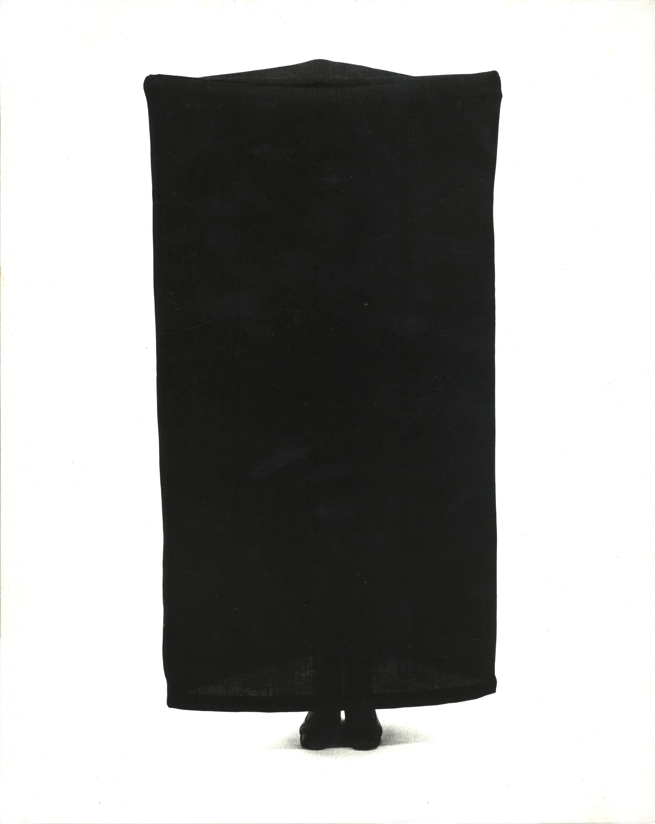 Damit rückt wiederum die Beziehung vom menschlichen Körper zum Raum in den Blickpunkt – ähnlich wie in „Contenitore-Ambiente“. Als wolle die Künstlerin den Faden weiterspinnen und ihm zugleich eine andere Richtung geben, zeigt sie in der Luzerner Ausstellung Fotodokumente ihrer um 1970 entstandenen und wiederum gemeinsam mit A. G. Fronzoni entwickelten Arbeiten „Abito – Contenitore“ (Kleidungsbehälter). Die Kleider aus grossen und dunklen schweren Stoffen werden zu Behältern. Sie nehmen den Körper der Künstlerin auf und präsentieren ihn so, dass die Verhüllung dem Volumen und der Kontur des Körpers eine starke Präsenz verleiht.