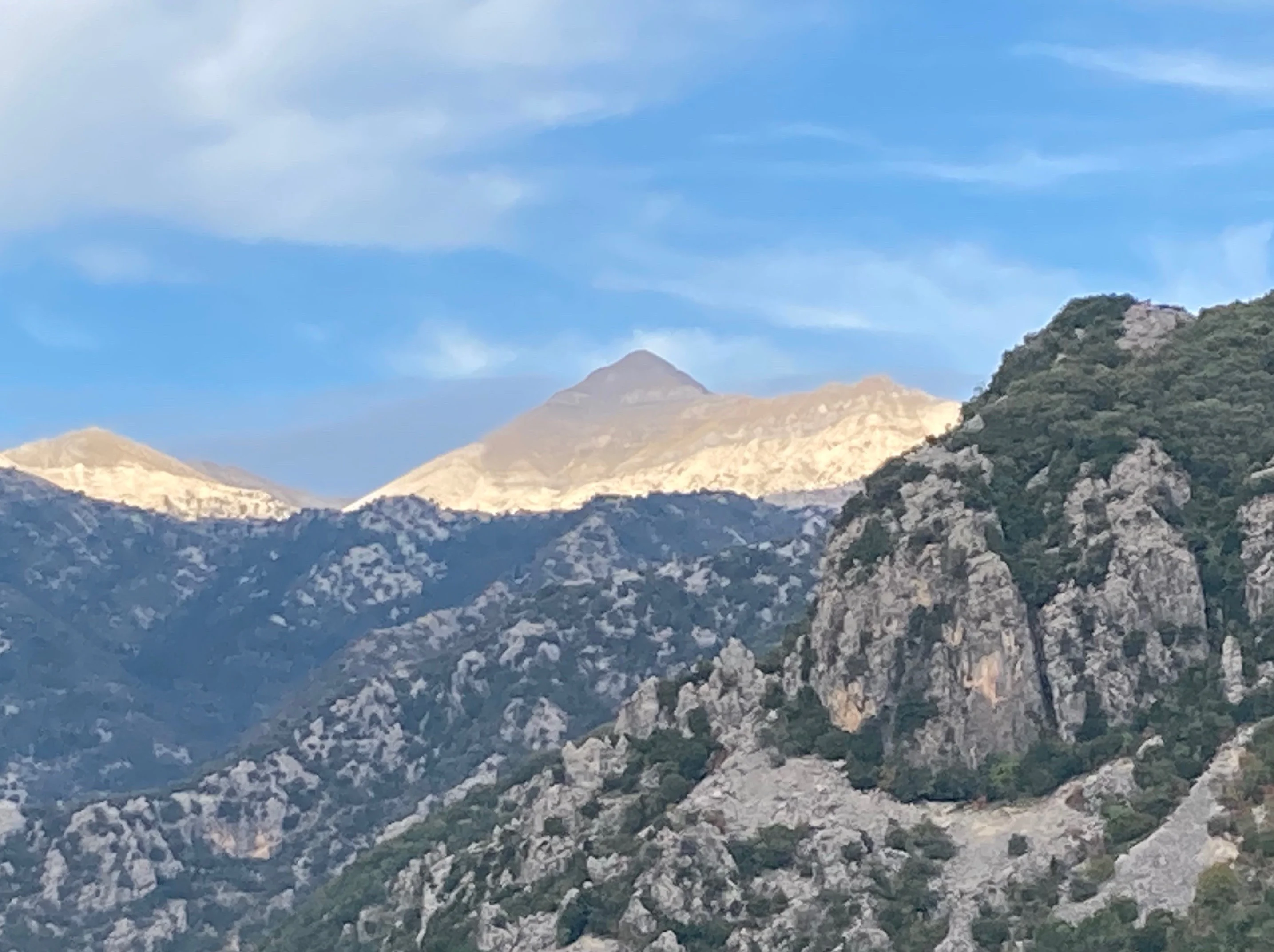 Und jetzt sind wir doch bereits seit zehn Tagen hier in der äusseren Mani, der einst vom Land her nur schwer zugänglichen Westküste des mittleren Fingers des Peloponnes, in einem kleinen Fischerdorf namens Agios Dimitrios. Hinter uns ragt steil das Taigetos-Gebirge in den hellblauen Himmel. Auf einer ersten Erkundungsfahrt durch die Bergdörfer hatten wir den 2400 Meter hohen Profitis Ilias (Prophet Elias) in der Abendsonne gesehen. Dahinter, auf der Ostseite der Halbinsel, liegt Lakonia, wo die «kriegswütigen» Spartaner wohnten, welche einst die «friedlichen» Messenier westlich des Gebirges ins Exil getrieben hatten, bis diese ein Jahrhundert später, nach dem vernichtenden Sieg der Thebaner über Sparta in der Schlacht von Leuktra, aus Sizilien und anderswo zurückkehrten. Im Jahre 369 vor Christus gründete Epaminondas in einem fruchtbaren Tal an einem bisher unbebauten Ort das neue Messene. Die Stadt, eindrückliches Beispiel eines grosszügigen Stadtentwurfes, von denen heute Stadtplaner nur träumen können, ist innerhalb von zwanzig Jahren entstanden und war von Anfang an von einer fast zehn Kilometer langen gewaltigen Mauer umgeben. Die Stadt ist zum grössten Teil erst im Laufe der letzten Jahre ausgegraben worden.