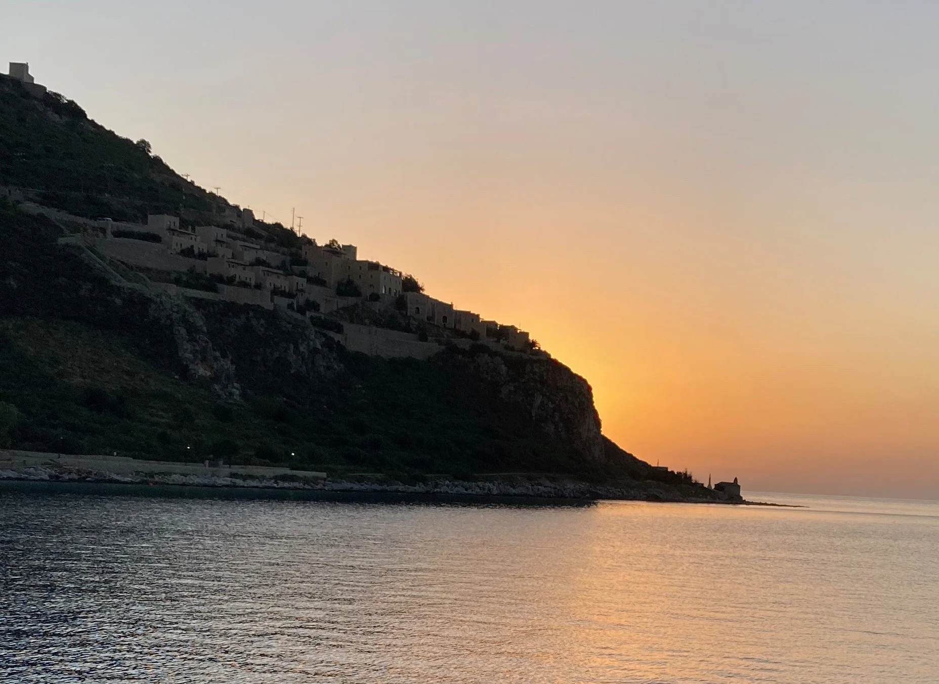 Als wir uns nördlich von Aréopolis, der Hauptstadt der inneren Mani, in der Bucht von Liméni, in einer Fischertaverne direkt am Wasser zum Nachtessen niederlassen, wird es bereits dunkel. Es gibt Crevetten und Tintenfisch, dazu frisches Gemüse. Ein Fischerboot fährt langsam in die Bucht; man hört, wie die Netze über Rollen ins Wasser gelassen werden.