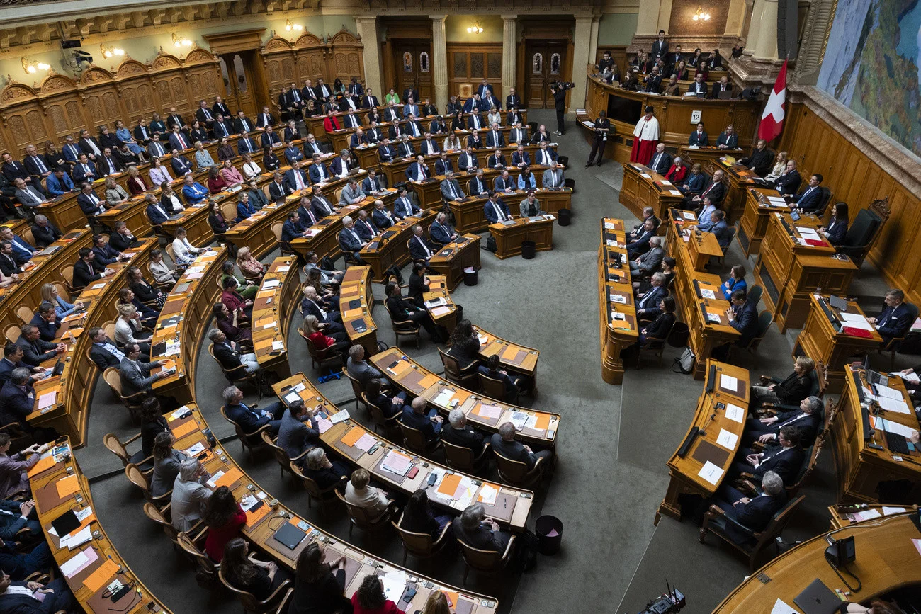08.00 Uhr: Nationalratspräsidentin Maja Riniker eröffnet die Sitzung im Nationalratssaal – das Parlament ist vollzählig, die Bundesratswahl kann beginnen. Als erstes wird die abtretende Bundesrärtin Viola Amherd (rechts) verabschiedet.