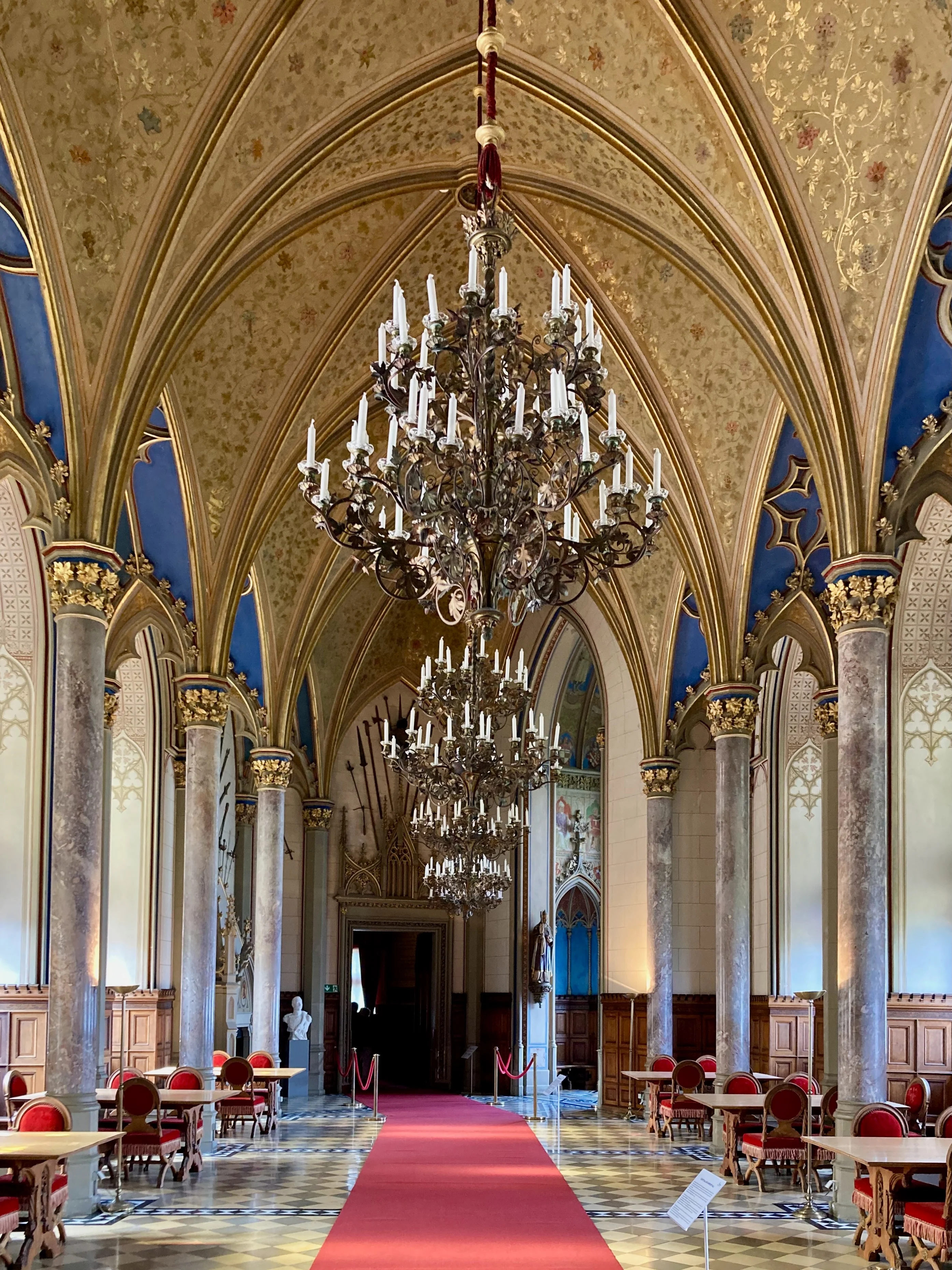 Hat man einmal den Eintrittspreis beglichen, kann man sich in der Burg frei und zeitlich unbegrenzt bewegen. Ein beschilderter Parcours führt unter anderem in den als Kathedrale gestalteten grossen Festsaal und weitere Repräsentationsräume sowie schliesslich in die Privatgemächer der Königsfamilie. Diese sind zwar detailliert beschriftet (Schlafgemach der Königin, des Königs etc.), aber kaum möbliert, was den musealen Charakter der Burg noch unterstreicht. Tatsächlich hat in diesen Räumen nie jemand von der Familie gewohnt.