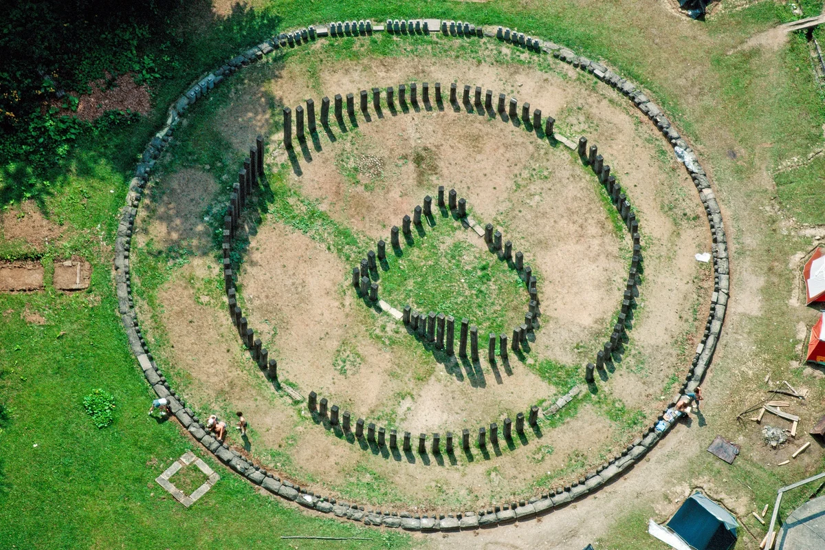 Die Reste der Festungsstadt Sarmizegetusa Regia kamen 1999 auf die Liste des Welterbes, der rumänische Archäologe Ioan Glodariu von der Universität Cluj-Napoca hatte sie erneut dem wuchernden Karpatenwald entrissen. Die Hauptstadt des Dakerreichs hatte offenbar auch den Rang einer heiligen Stadt. In einem Kultbezirk auf drei Geländeterrassen, im Schutz einer mächtigen Burg, standen nicht weniger als elf viereckige oder kreisförmige Heiligtümer. Das grösste bestand aus zwei konzentrischen Kreisen mit einer apsidialen Einlage, vermutlich dem Allerheiligsten. Holzpfosten und Steinpfeiler markieren die Räume, die mit Schindeln oder sogar Ziegeln überdacht waren  - bei den Abmessungen des äussersten Kreises (30 Meter Durchmesser) kein  Kinderspiel. Den Vergleich dieser Anlage mit Stonehenge hält Professor Glodariu für Unfug. Allerdings räumt auch er eine mögliche archäoastronomische Bedeutung einzelner Denkmäler in diesem Sakralbezirk ein. Alle Heiligtümer sind nach den Vorgaben eines „Sonnensteins“ ausgerichtet. Und die Stützpfeiler des grossen Heiligtums eigneten sich dafür, kalenderträchtige Schnittpunkte der scheinbaren Sonnenbahn mit dem Horizont anzupeilen. Das apsidiale Allerheiligste ist nach der Sonnenwende orientiert. Also vielleicht doch in bescheidener Form ein Horizontkalender, der die Tag-und-Nachtgleichen und die Sonnenwenden anzeigte.
