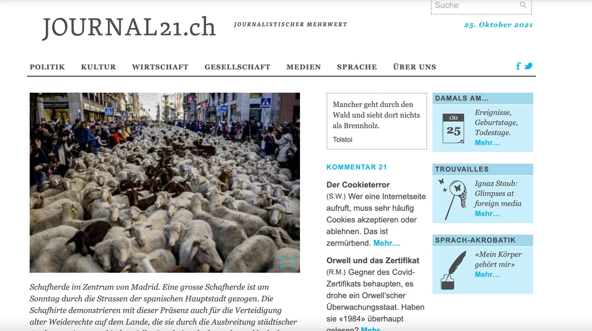Am Dienstag, 26. Oktober 2021 um 09.42 Uhr wurde das „neue“ Journal21 erstmals aufgeschaltet. Wir hoffen, dass es Ihnen gefällt.
