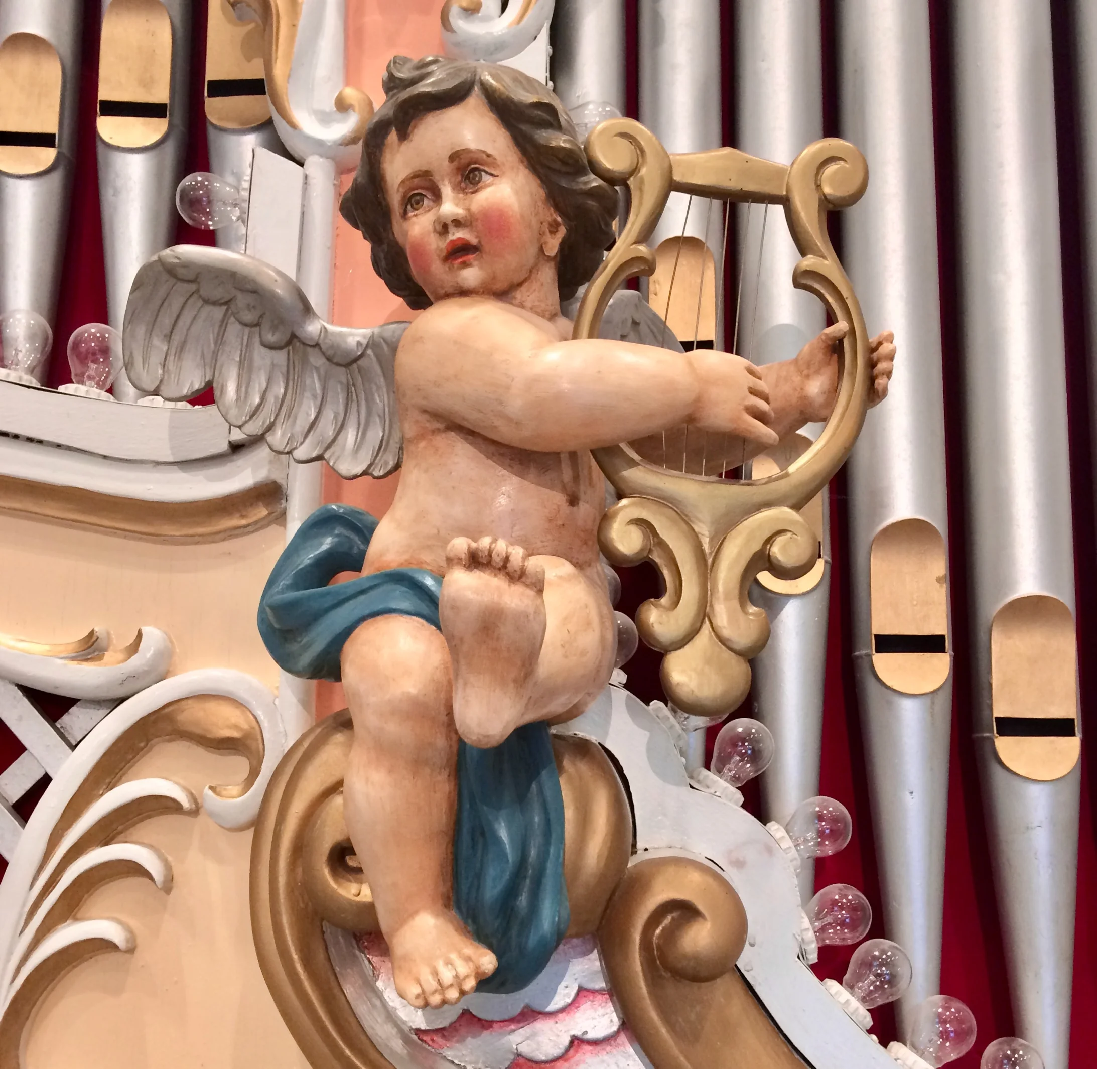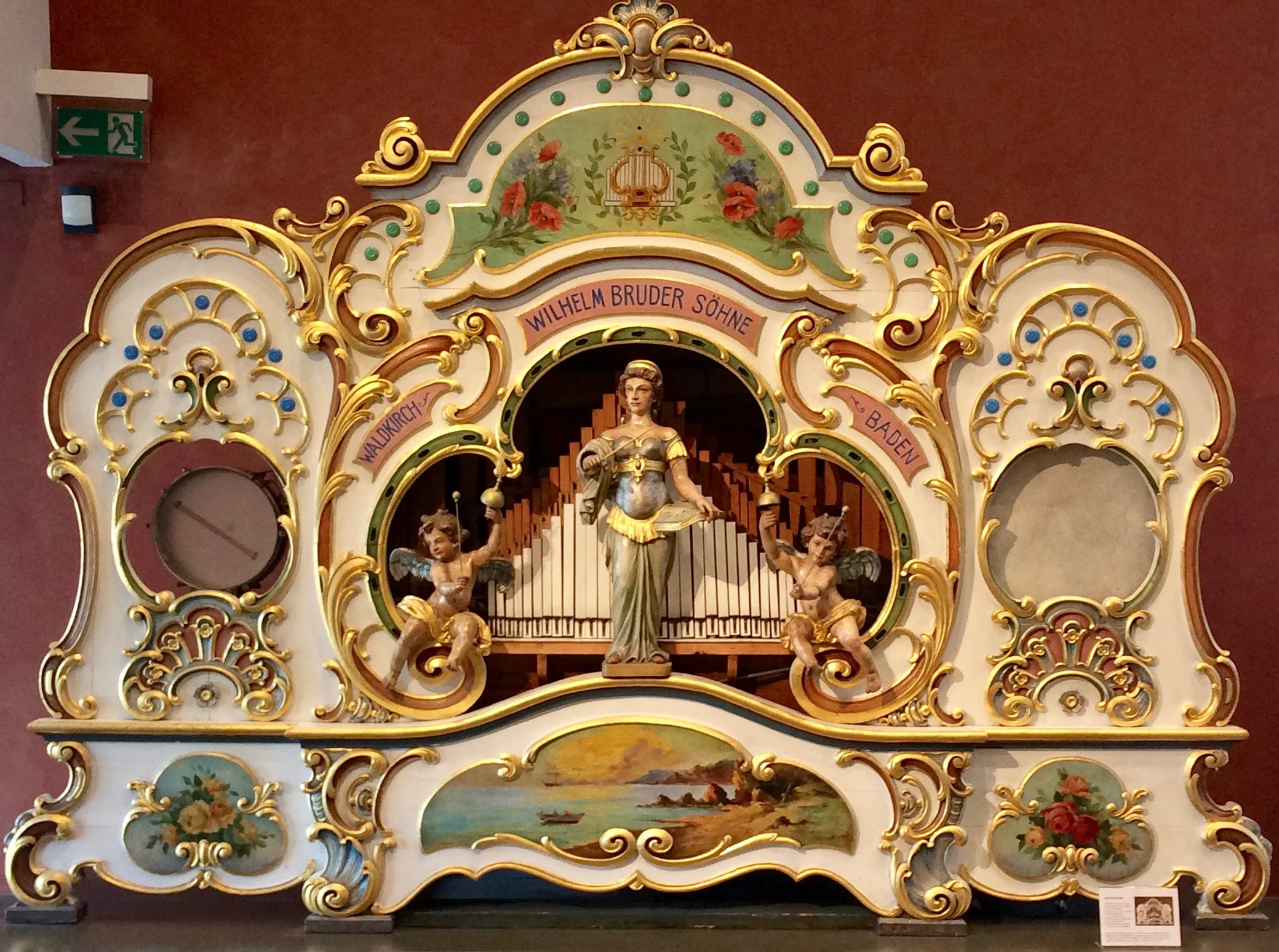 Doch vor dem Essen die „Arbeit“, so hat es der Zwinglianer gelernt, und so will er es auch im katholischen Kanton Solothurn halten. Ein erster Rundgang ist überwältigend und verwirrend zugleich. Hier sind sie alle, manche winzig, andere monströs, die melodiöse Genüsse versprechenden Automaten. Sie stehen stumm und warten auf den guten Geist, der sie zum Tönen bringt. Dieser wird allerdings erst um 12.20 Uhr kommen, also gehen wir schnell noch zum Mittagessen. Anschliessend trifft man sich für die Führung auf der weissen Bank vor der immensen Orgel in der Haupthalle.