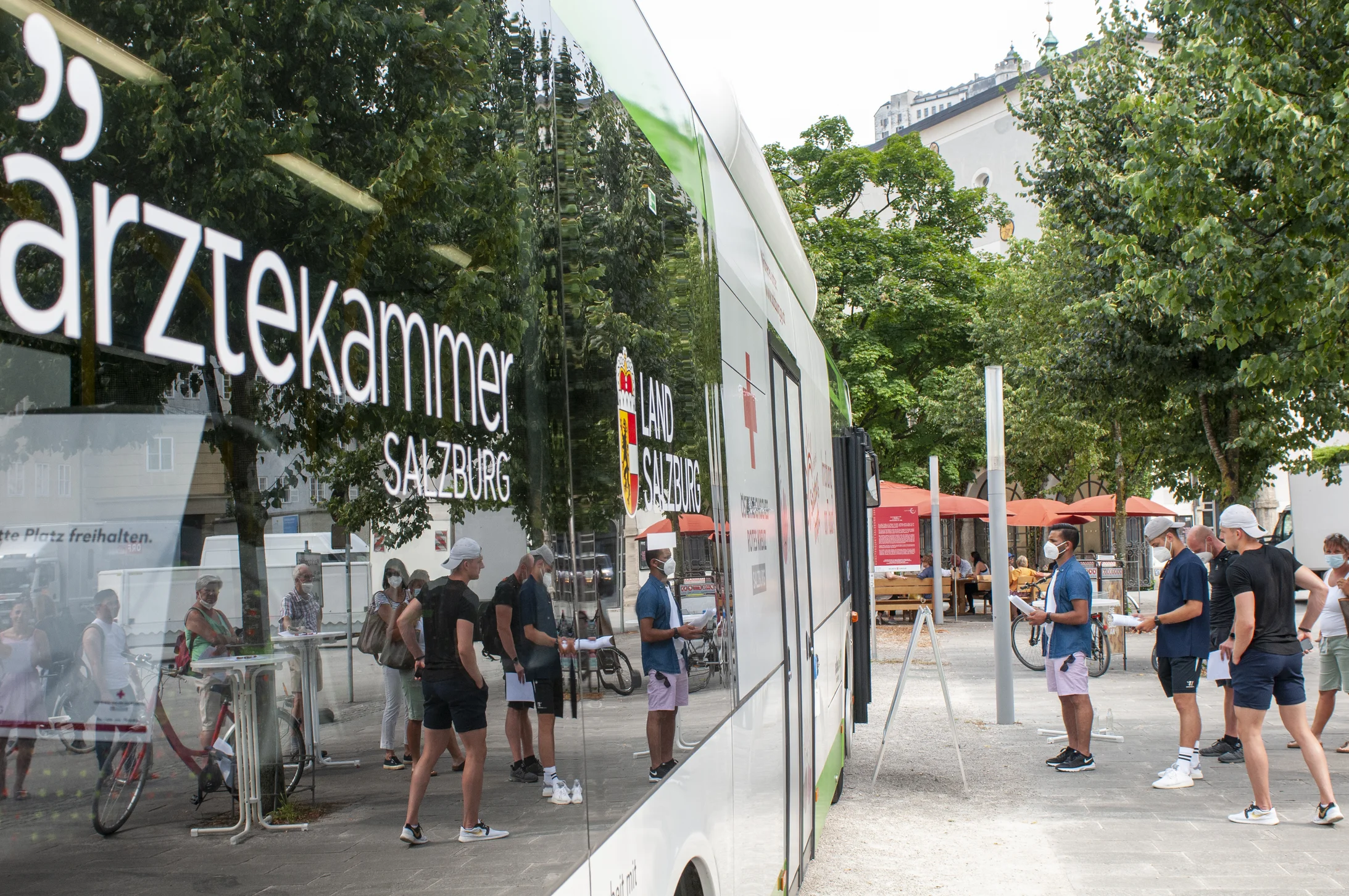 Dieses Jahr war also fast alles wie immer, die Kontrollen wurden allerdings rigoros durchgezogen. Am Eingang musste man sein personalisiertes Ticket vorweisen. Dies wurde mit dem Personalausweis verglichen, ebenso mit dem Covid-Zertifikat. Zu diesem Zeitpunkt musste man – an der Schwelle zum Eingang – bereits eine FFP2-Maske tragen bis zum Verlassen des Hauses. Erstaunlicherweise funktionierte dies besser als befürchtet, niemand murrte. Ausserdem stand ein Impfbus bereit, gleich gegenüber vom Festspielhaus. Die Nachfrage war gross …