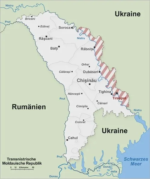 Würde die russische Armee die Republik Moldau besetzen, könnte sie die Ukraine wie bisher von Osten her und neu dann auch von Westen her in einen Zangengriff nehmen.