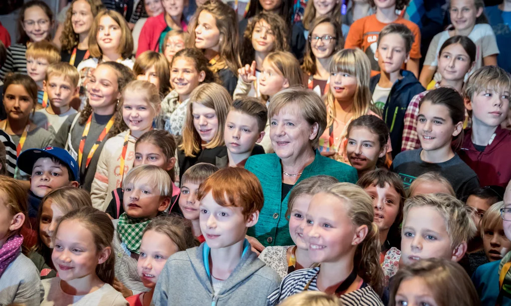 Die sieben grossen Umfraginstitute gaben ihr am Sonntag zwischen 36 und 38,5 Prozent der Stimmen. Die SPD käme danach auf Werte zwischen 22 und 24 Prozent, die Grünen auf ein Ergebnis zwischen 6 und 9 Prozent und die FDP auf 8 bis 10 Prozent. Für Die Linke errechnen die Meinungsforscher 8 bis 12 Prozent. Die AfD käme auf ebenfalls auf 8 bis 12 Prozent. Das Bild zeigt Merkel am Sonntag beim Familientag der CDU in Berlin. An einer Kinderpressekonferenz durften die jungen Reporter der Kanzlerin Fragen stellen. (Foto: Keystone/DPA/Michael Kappeler)