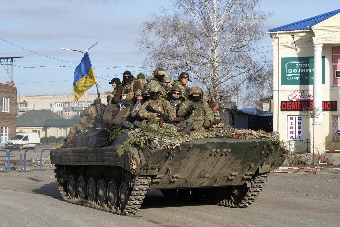 Ukrainische Truppen haben die Stadt Trostjanez nahe der russischen Grenze zurückerobert. Bilder von Nachrichtenagenturen zeigen zerstörte russische Panzer und tote russische Soldaten. Ukrainische Soldaten fahren auf Panzern durch die Stadt. Trostjanez, das südlich von Sumy liegt, war in den ersten Kriegstagen von russischen Truppen erobert worden und zählt 20’000 Einwohner.