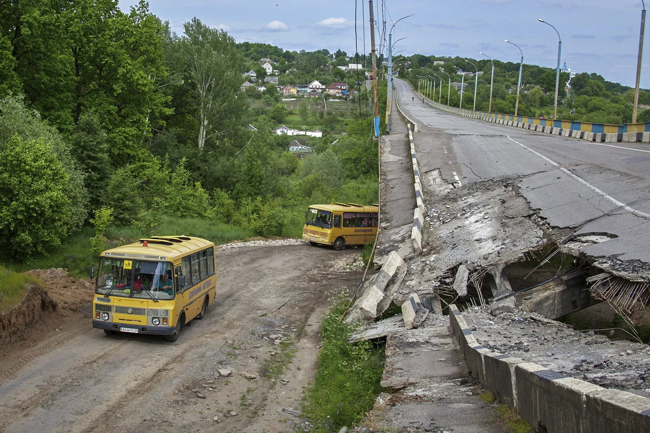Die russischen Truppen haben sich vorläufig grösstenteils aus der Region Charkiw zurückgehzogen und konzentrieren sich auf Angriffe bei Sewerodonesk. Sollte diese Stadt fallen, erwarten ukrainische Militärs, dass erneut Charkiw angegriffen wird. Viele Menschen in der zweitgrössten ukrainischen Stadt machen sich auf zur Flucht in den Westen. Im Bild: Schulbusse transportieren Einwohner von Charkiw aus der Gefahrenregion.
