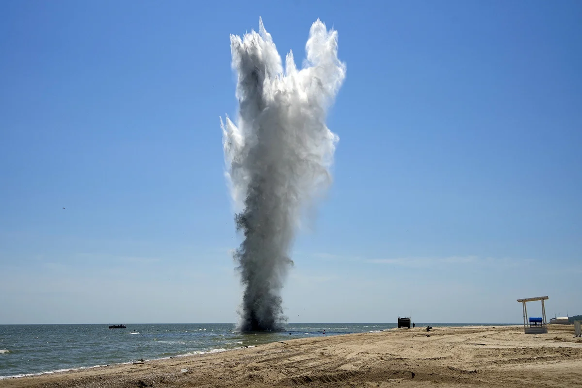 Russland richtet sich ein, in der Ost- und Südukraine zu bleiben. Die von Russland besetzten südukrainischen Gebiete werden entmint. Im Bild: Die Sprengung einer Mine bei Mariupol. Häuser werden repariert, die Wasser- und Stromversorgung wird wieder hergestellt, Märkte werden geöffnet. Die Russen sind dabei, Eisenbahnlinien und Strassen in Stand zu setzen. In der Region Cherson und Melitopol werden russische Pässe abgegeben.