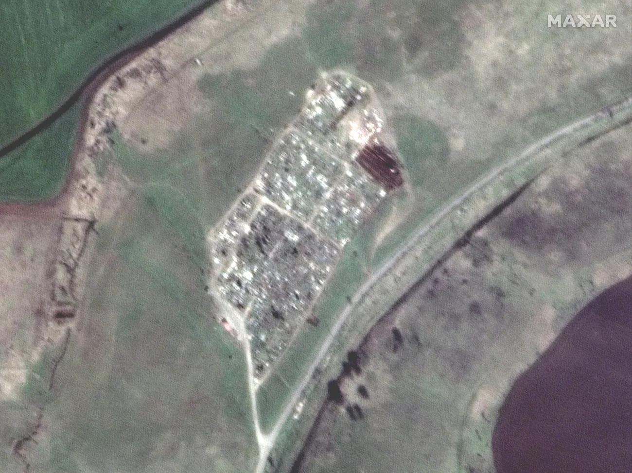 Bereits am Donnerstag war auf einem Satellitenbild von Maxar ein frisches Gräberfeld beim Friedhof Manhusch, etwa 20 Kilometer östlich von Mariupol zu sehen. Es soll Ende März angelegt und in den letzten Wochen erweitert worden sein, erklärt Maxar Technologies. Vadym Boychenko, der Bürgermeister von Mariupol schätzte, dass dort zwischen 3000 und 9000 tote Zivilisten liegen könnten.