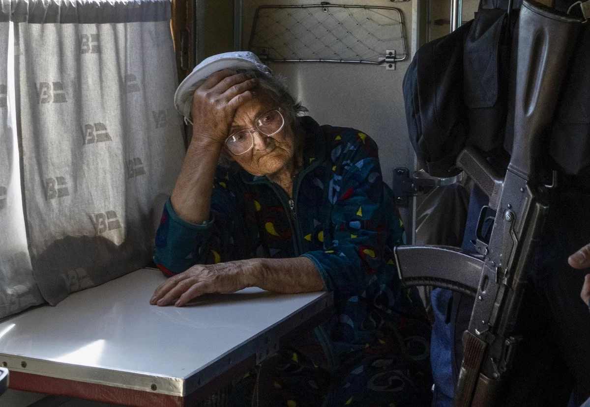 Ohne Rücksicht auf Kollateralschäden bombardieren die Russen Dörfer und Städte im Donbass und legen ganze Landstriche in Schutt und Asche. Militärisch nützt ihnen das wenig. Betroffen sind vor allem Zivilpersonen. Jeden Tag werden Tausende aus dem Osten des Landes evakuiert. Im Bild eine Frau im Bergbaustädtchen Pokrowsk, die im Zug auf die Fahrt in den Westen wartet.