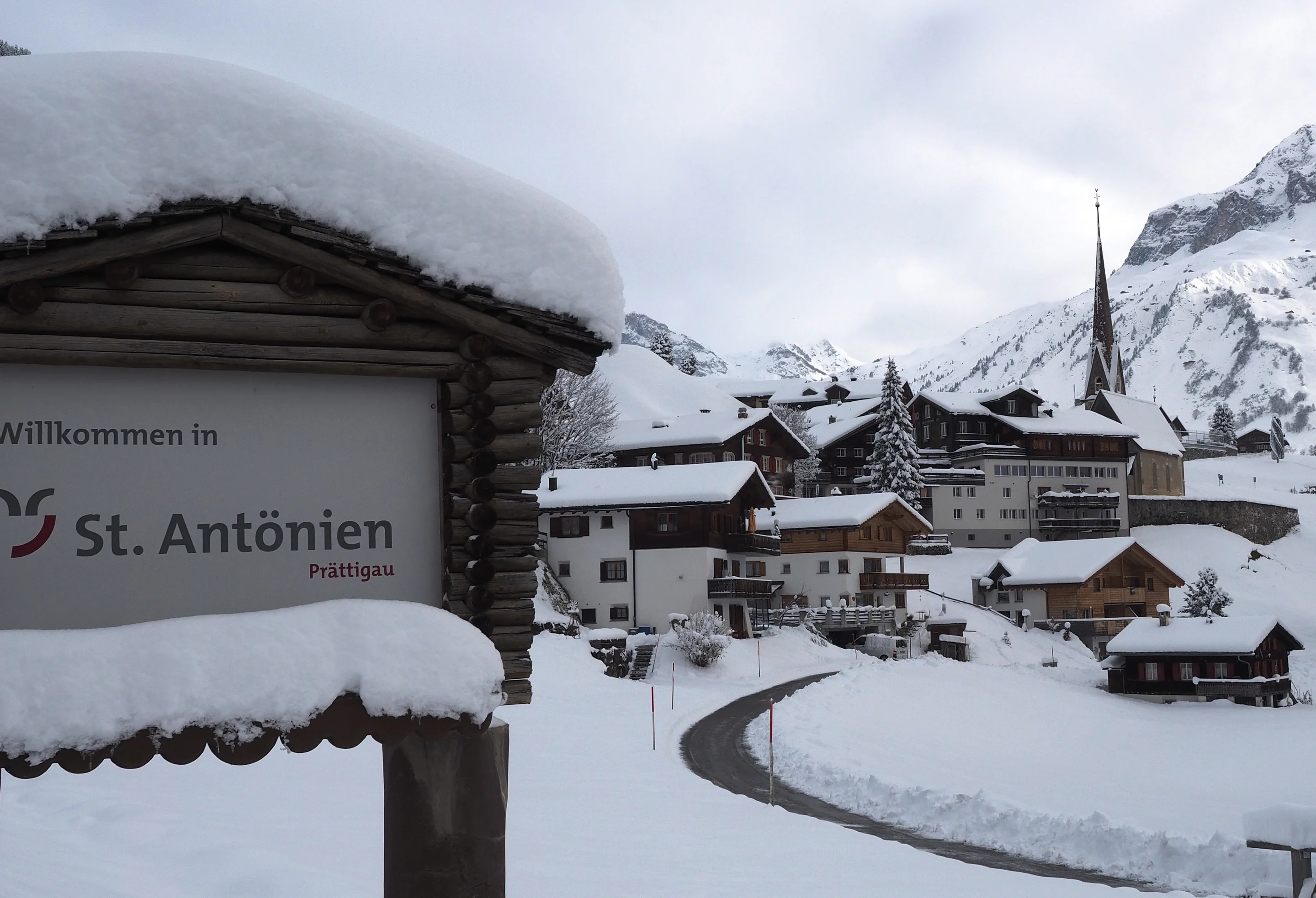 Wenn man mit den Skiern hinüber traversiert zum Chüenihorn, vorbei am Carschinasee, sieht man tief unten St. Antönien, eine Walser Streusiedlung. Es gibt einen Dorfkern, wo das Postauto hält, die alte Kirche aus dem 15. Jahrhundert, ein paar Hotels und Gasthäuser, einen Volg und einen kleinen Skilift.